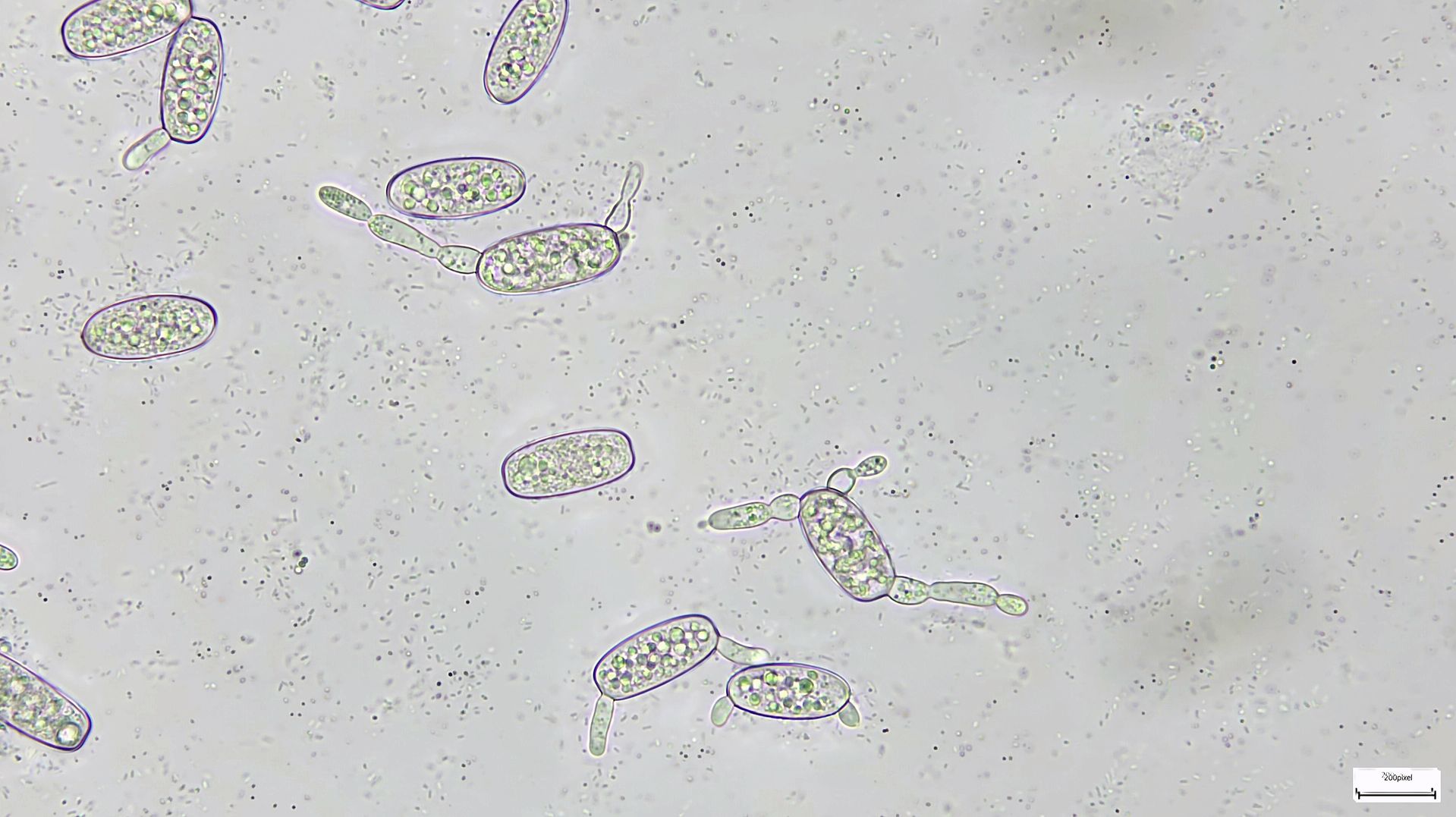 Sporen im Abwurf oft trunkat, um die 30µm (teils auch länger):