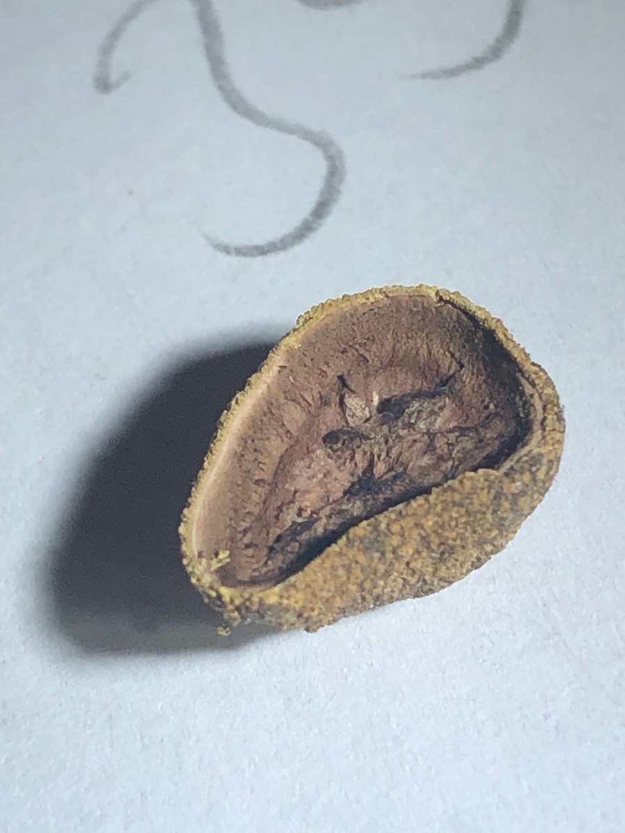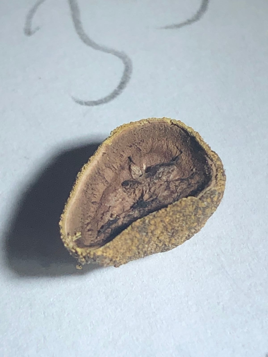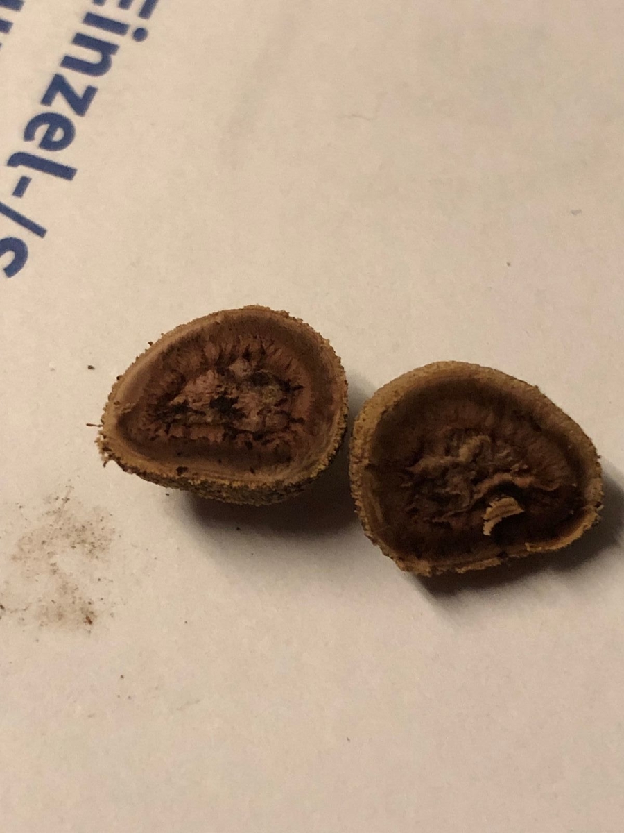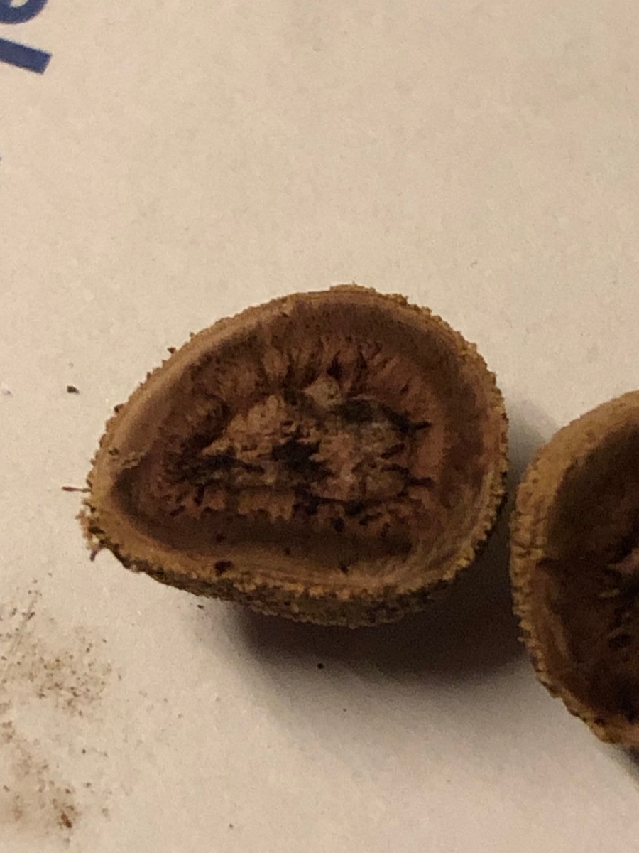 wie war denn die Farbe zwischen dem dunkelbraunen Inneren und der warzigen Aussenseite?