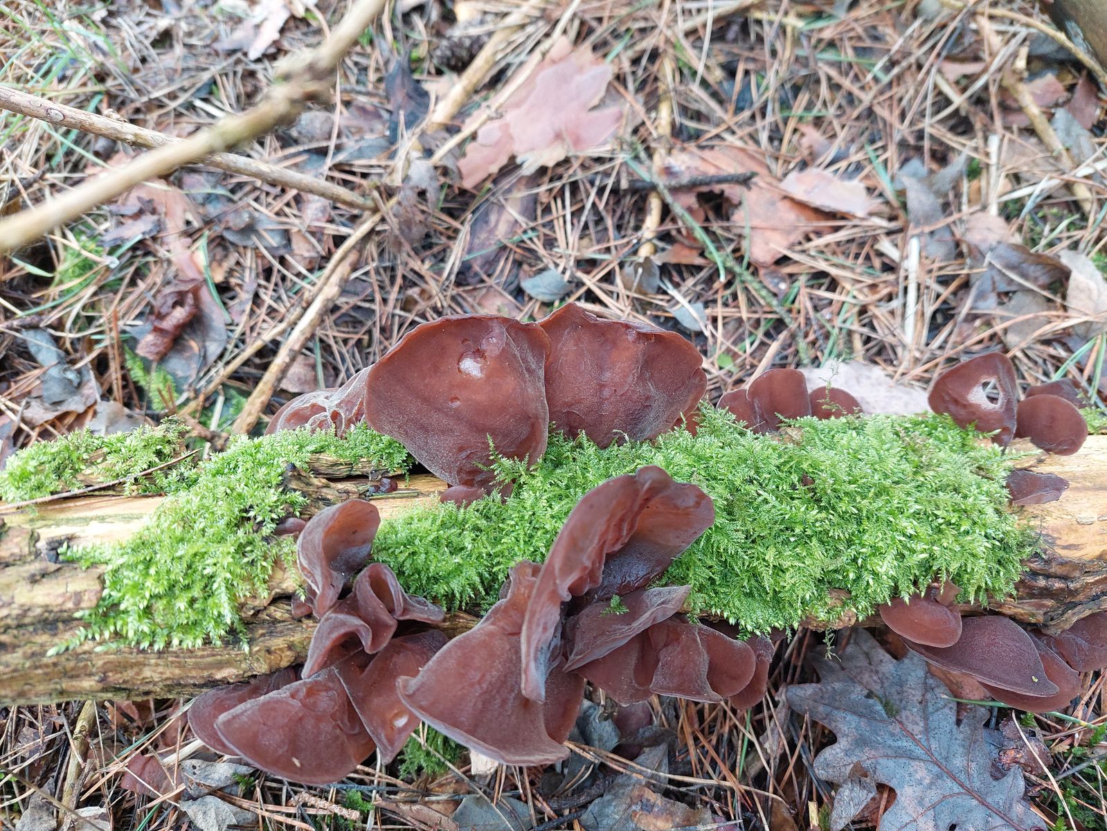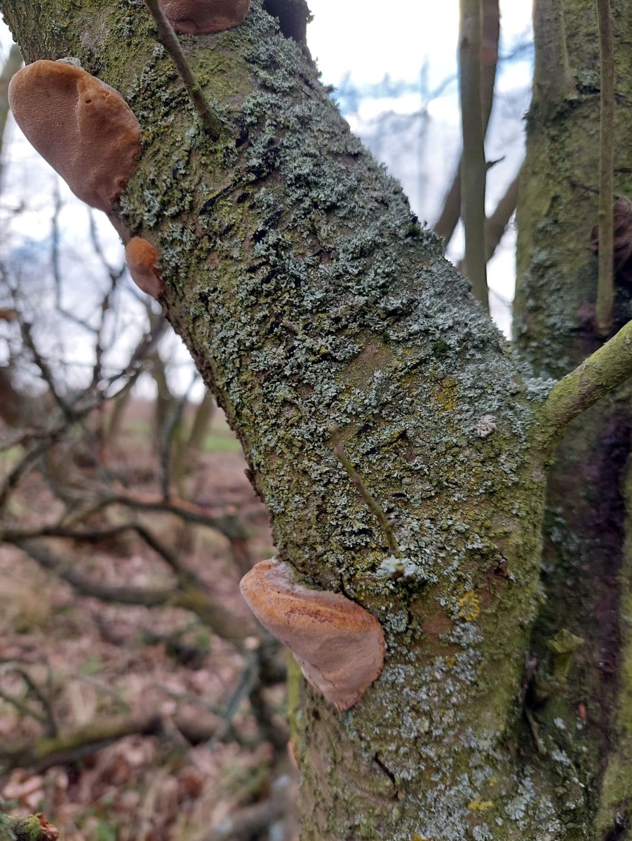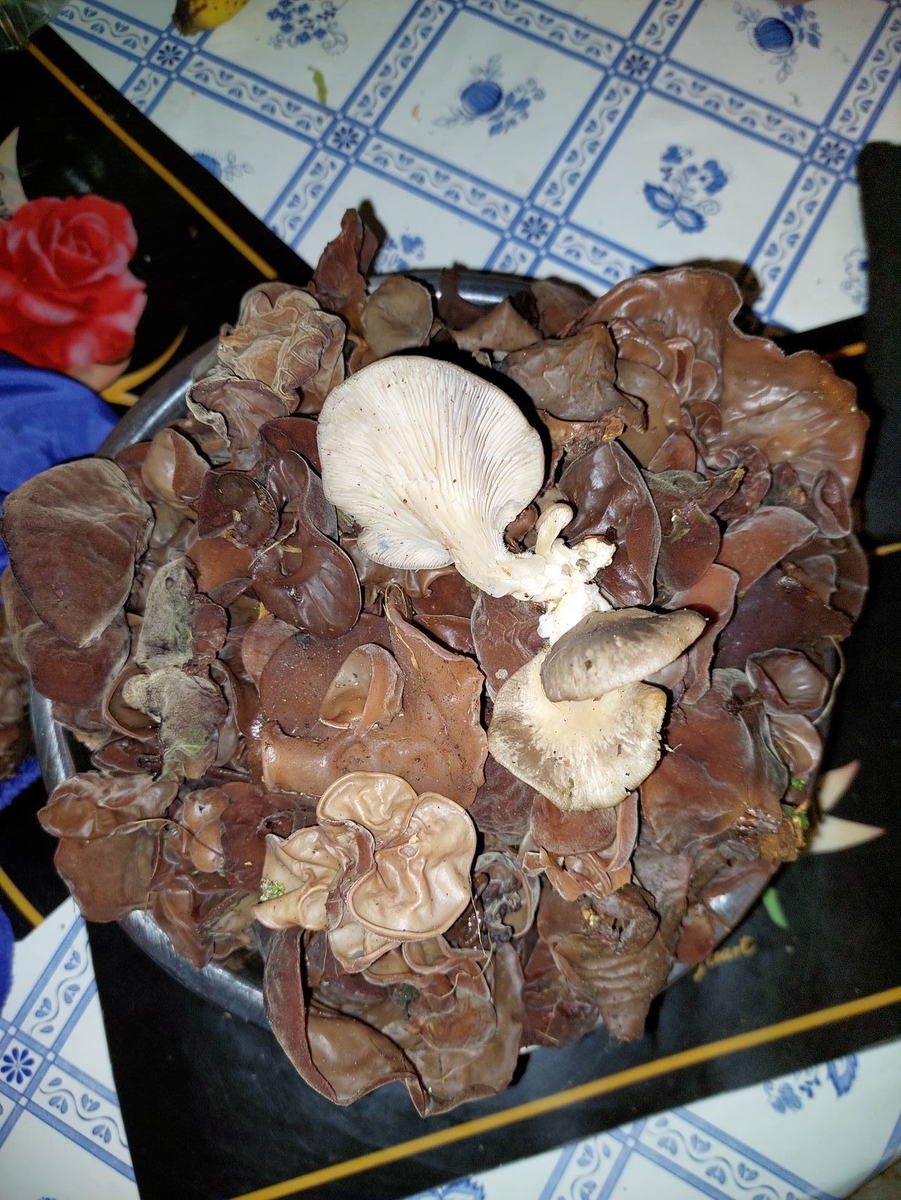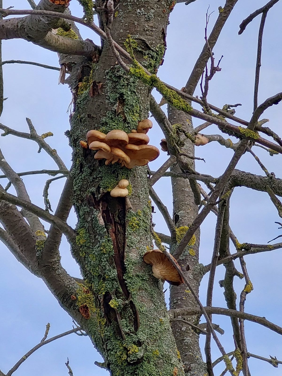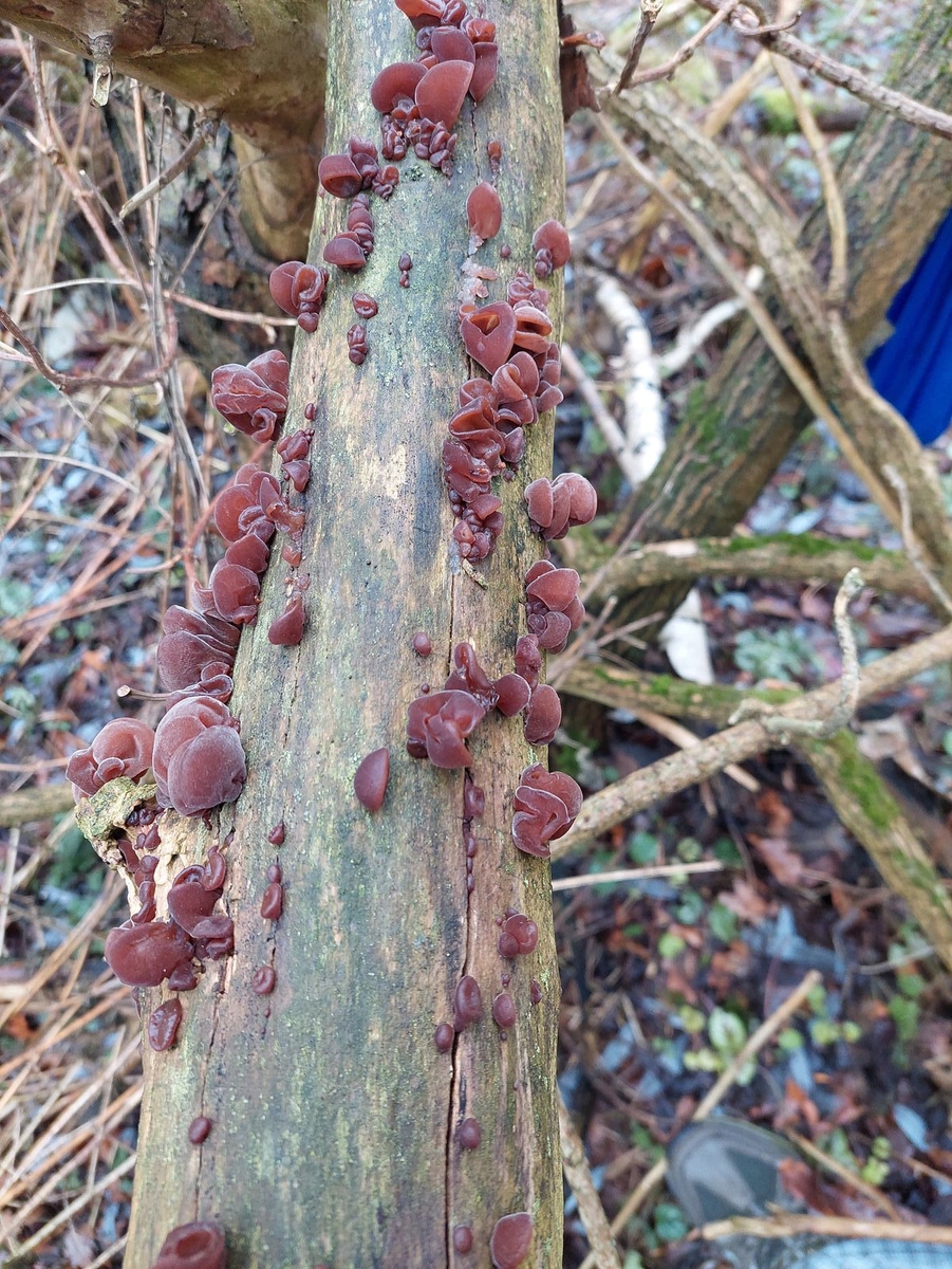 Draußen war ich, so oft es ging. Wie immer gab es viel zu entdecken. Die Bilder zeigen nur einen kleinen Teil. Viel Judasohren, relativ wenig Austerseitlinge noch weniger Samtfußrüblinge. Einige Erstfunde waren dabei, wie die Geweihförmige Holzkeule, Pflaumen-Feuerschwamm, sehr viele Goldgelbe Zitterlinge. Das ganze verrückte Pilzjahr ging im " Winter" weiter.