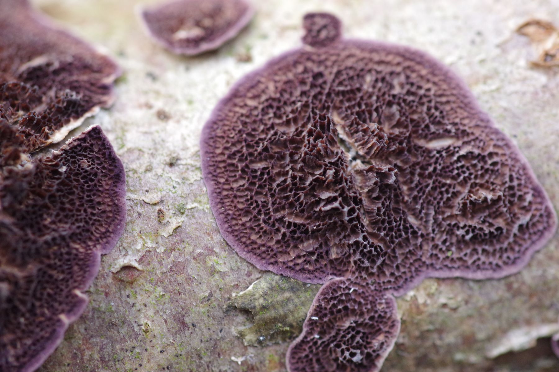 Trichaptum abietinum (?) an Hasel