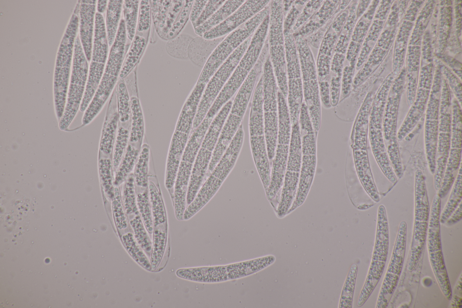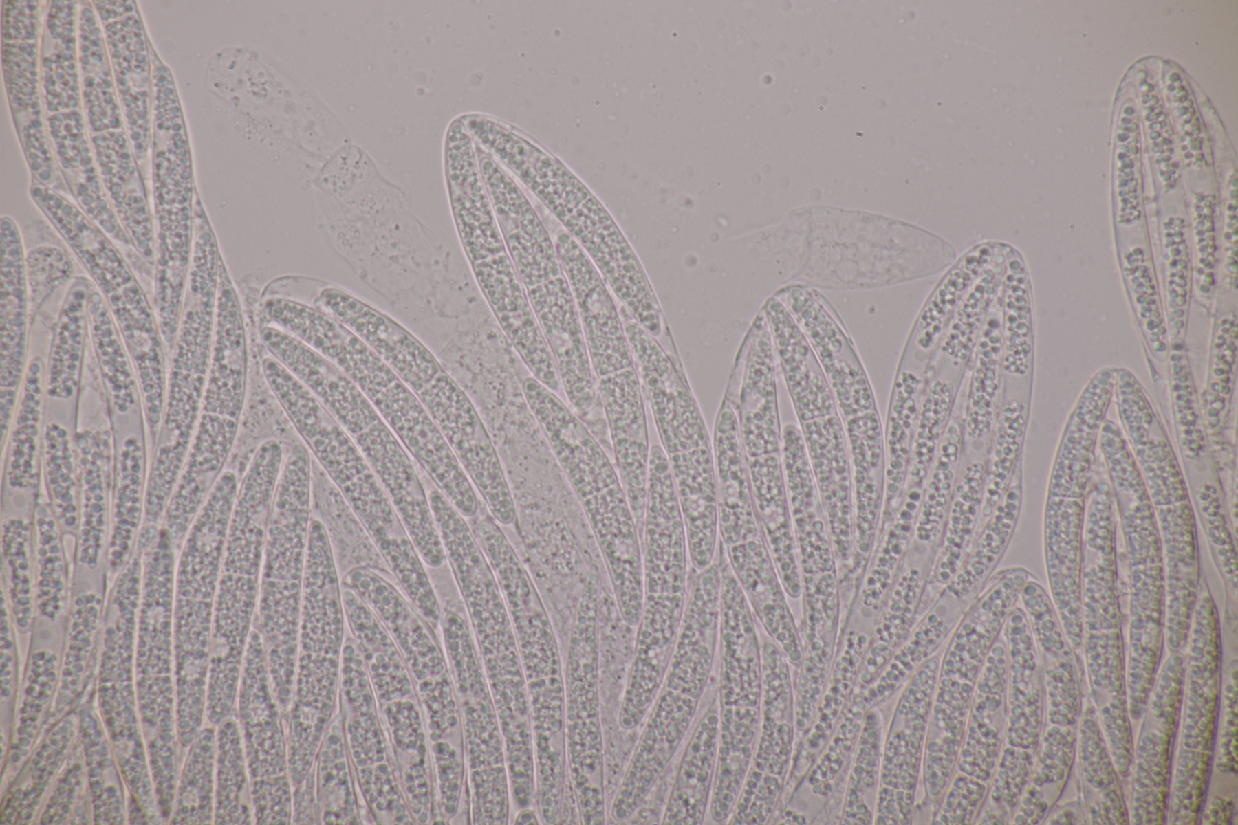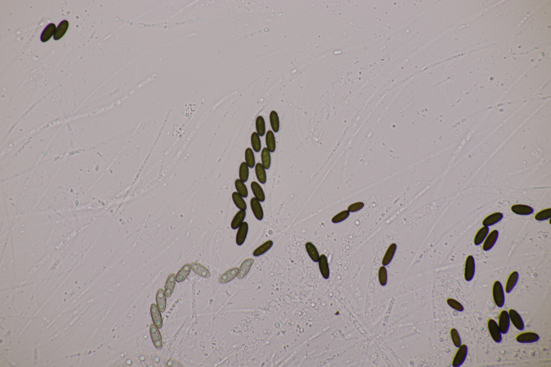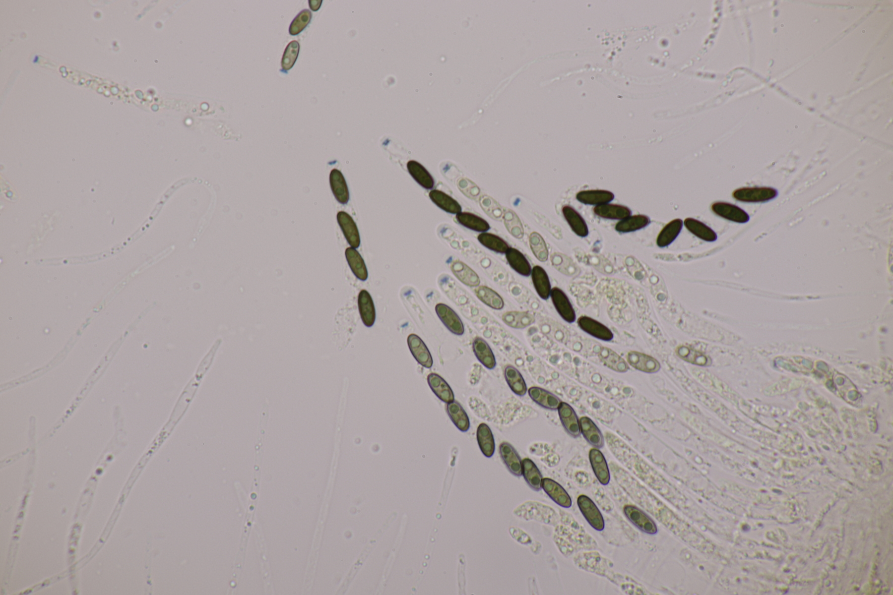 2. Lopadostoma fagi, unterscheidet sich von L. turgidum durch die etwas kleineren und schlankeren Sporen, die eine rundum laufende Keimspalte haben