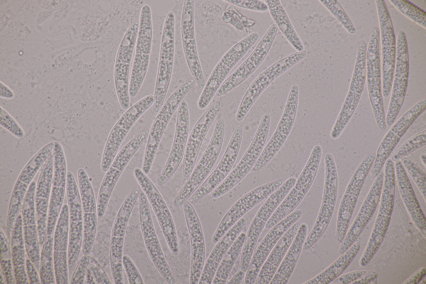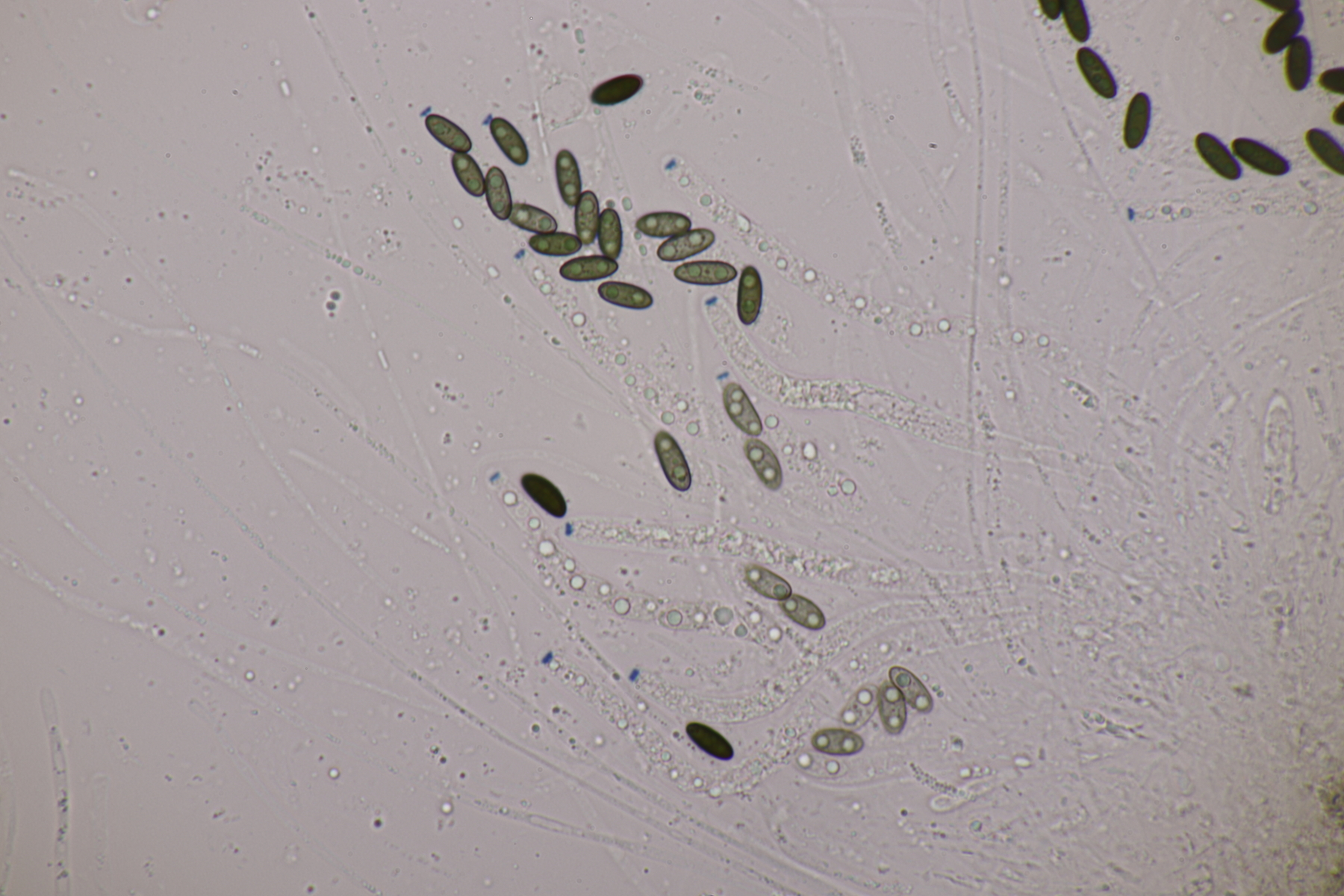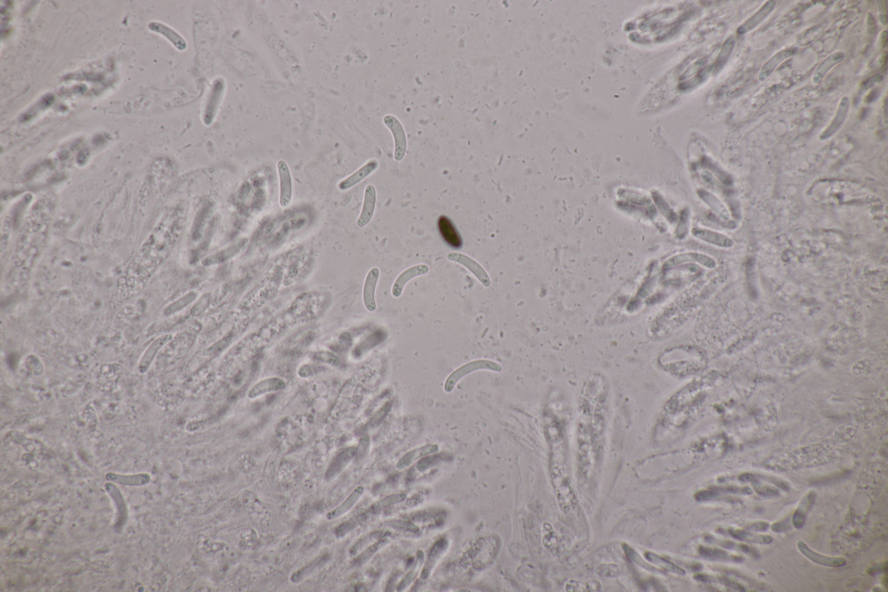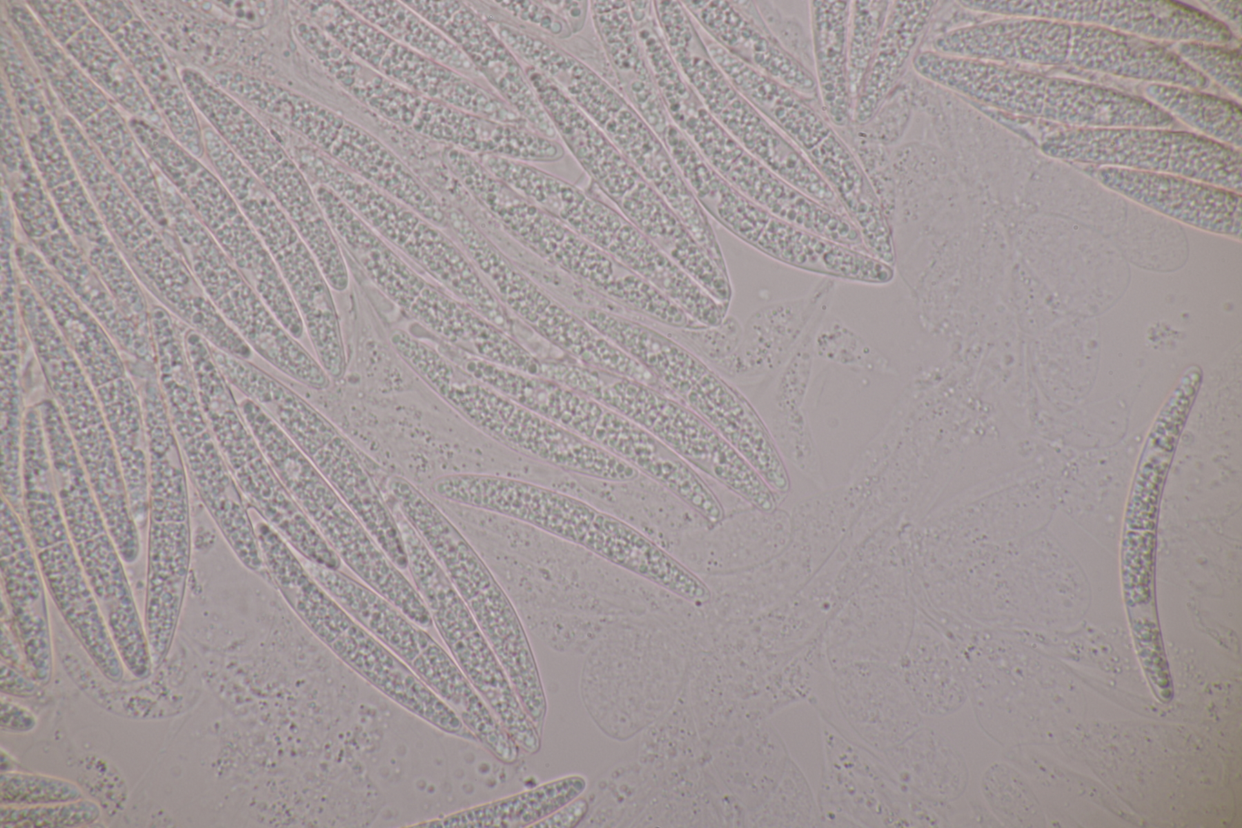 2. Lopadostoma fagi, unterscheidet sich von L. turgidum durch die etwas kleineren und schlankeren Sporen, die eine rundum laufende Keimspalte haben