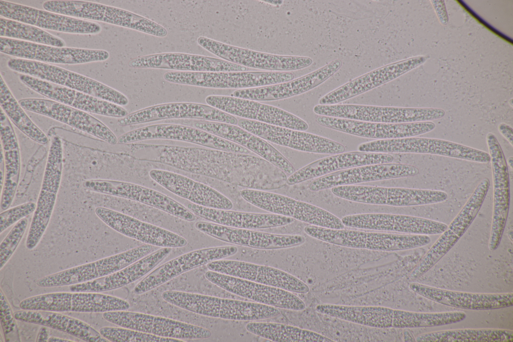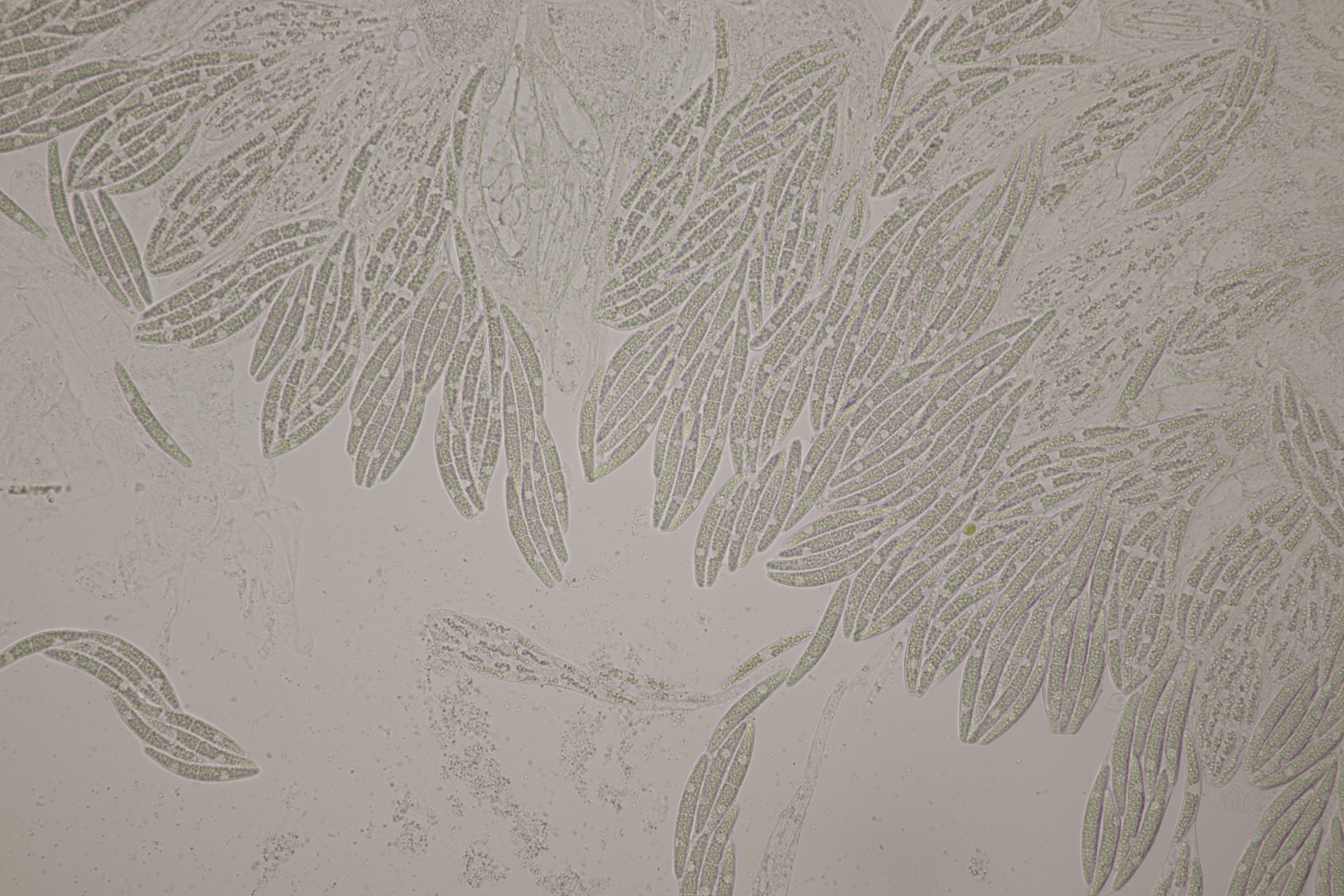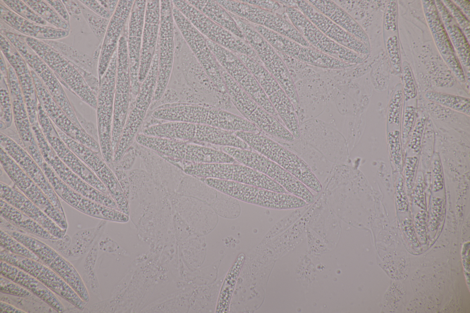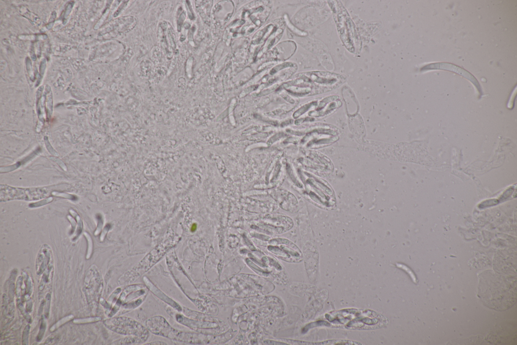 2. Lopadostoma fagi, unterscheidet sich von L. turgidum durch die etwas kleineren und schlankeren Sporen, die eine rundum laufende Keimspalte haben