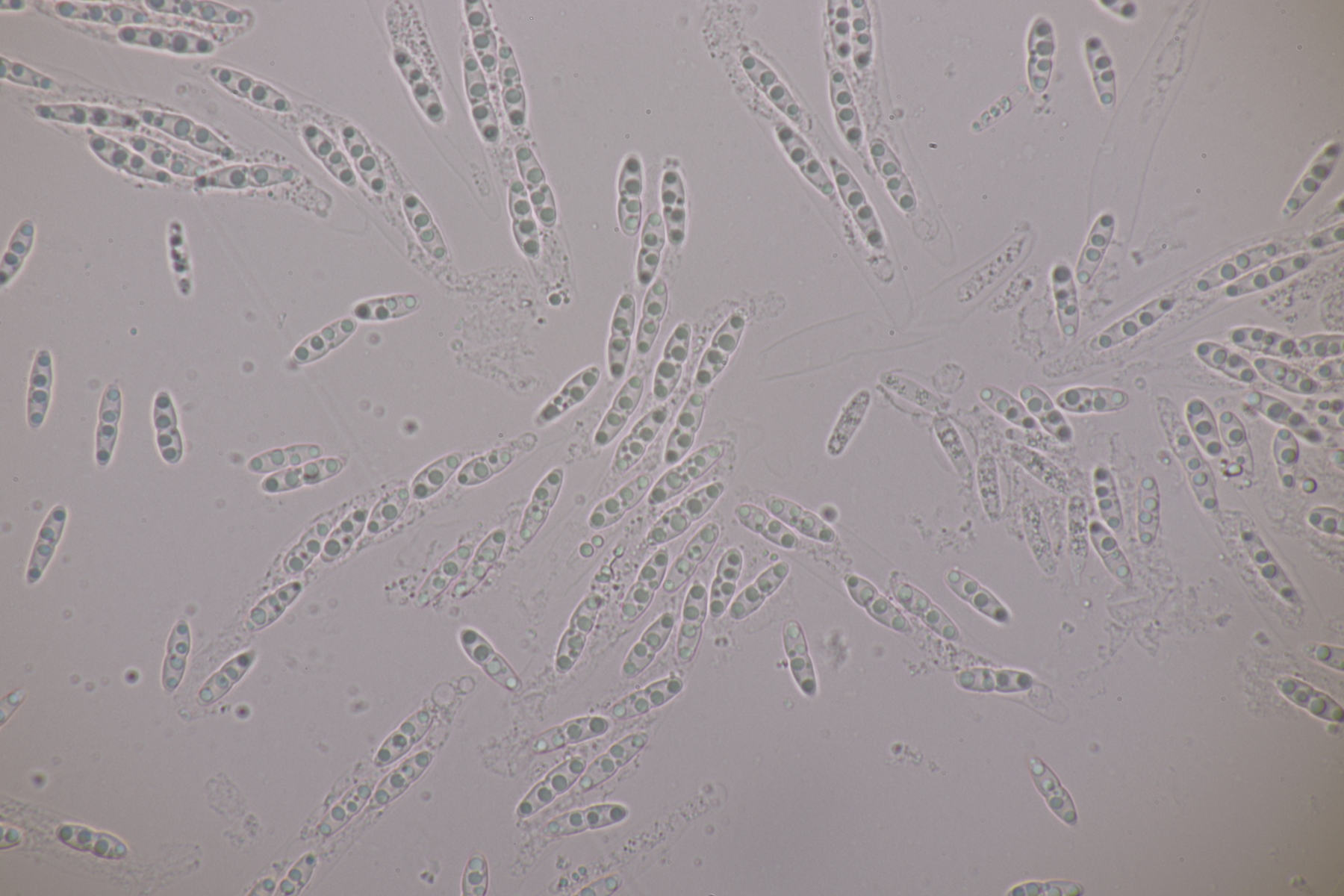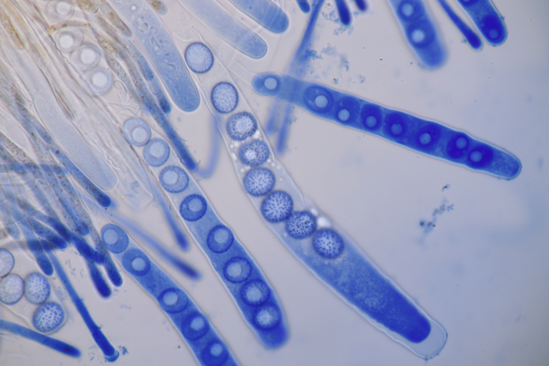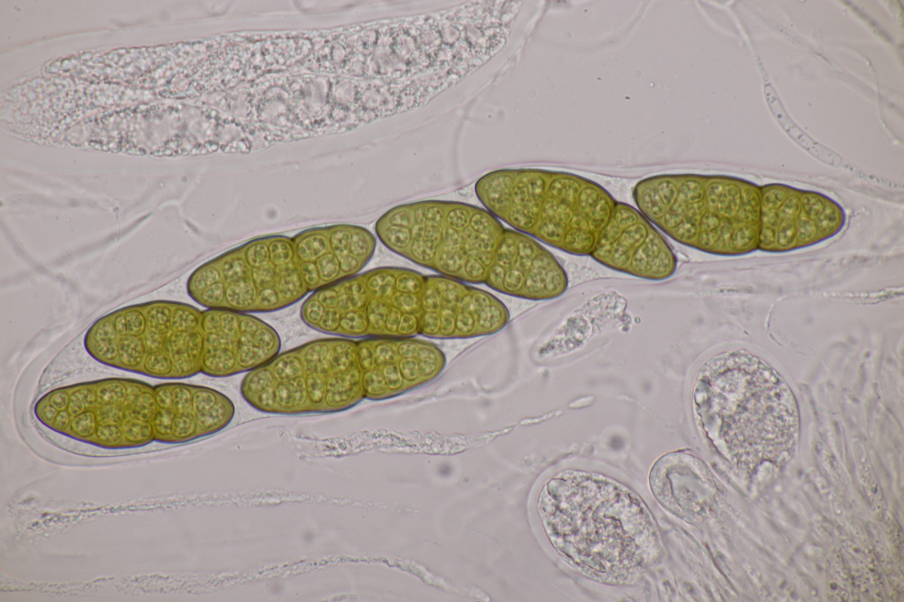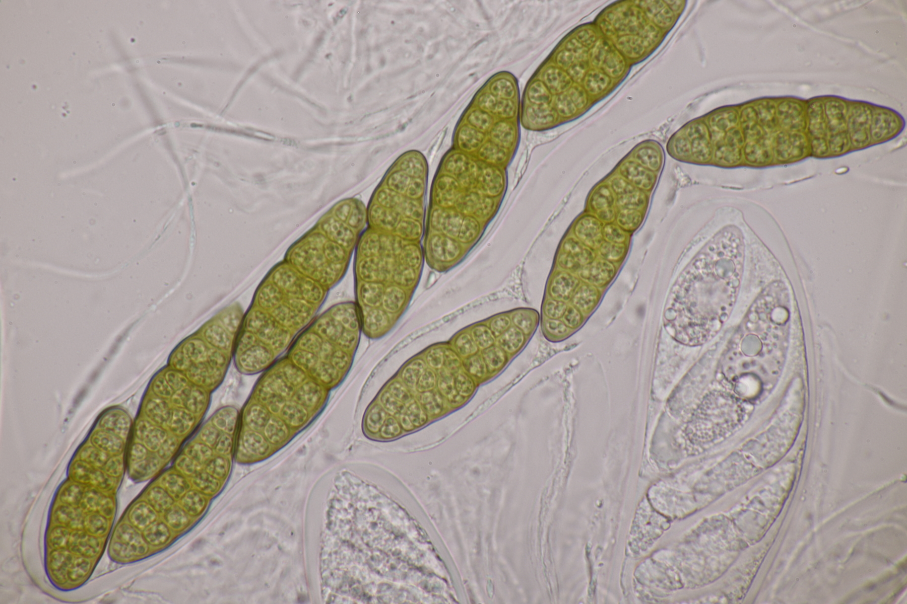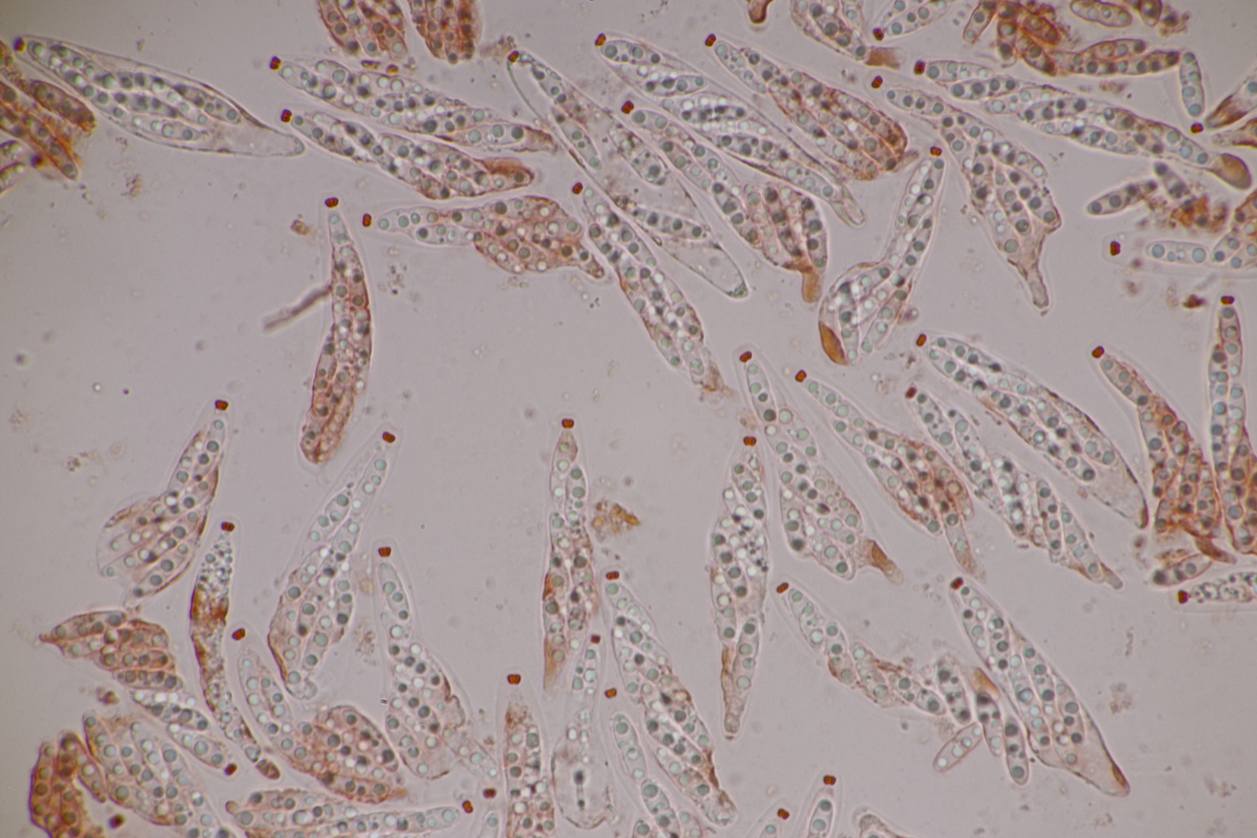 3. Sarcoscypha sp. Ich wollte dann doch nicht jeden fotografierten Fruchtkörper mikroskopieren und offenbar wachsen dort beide Arten durcheinander