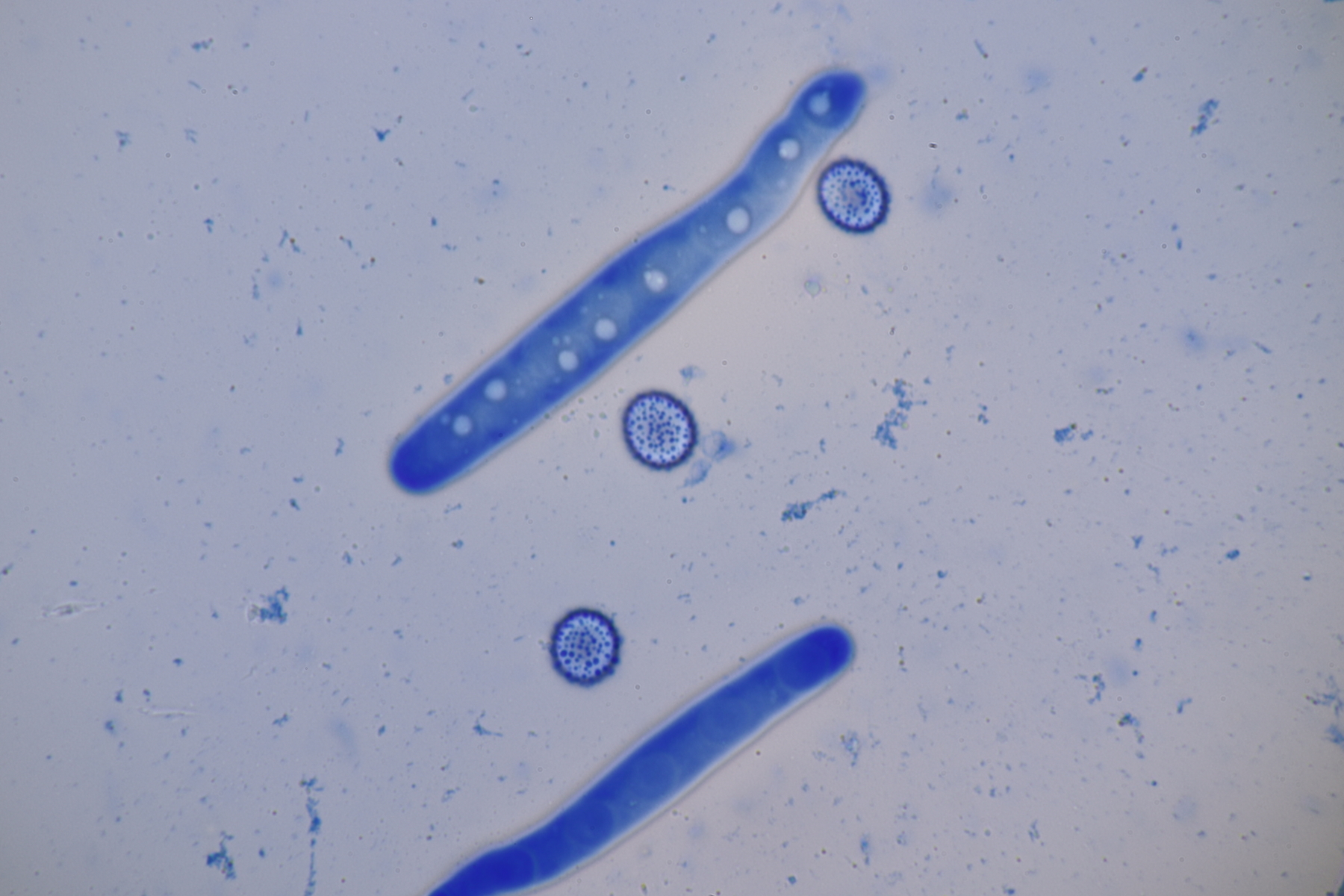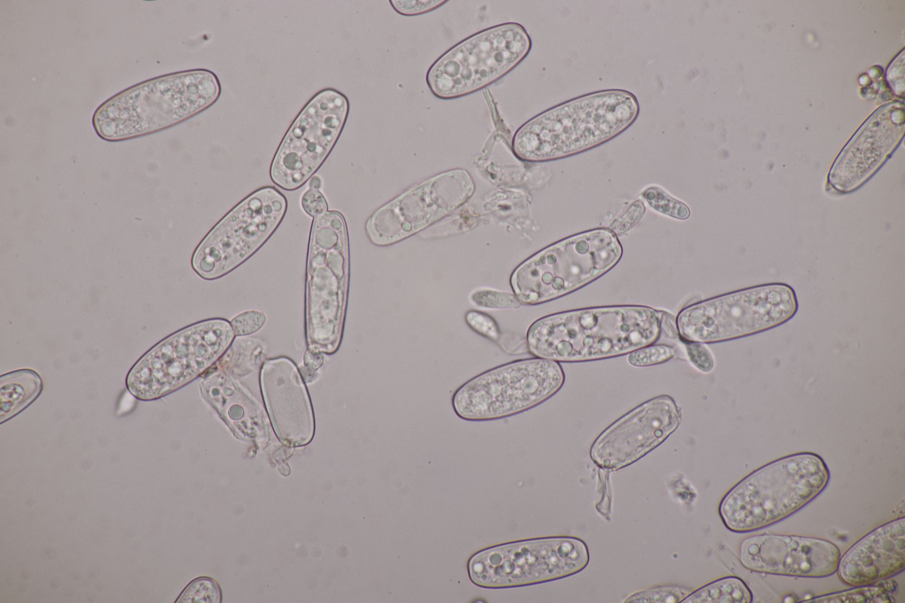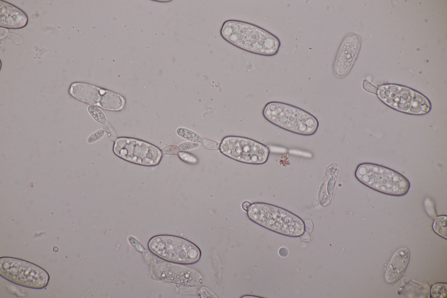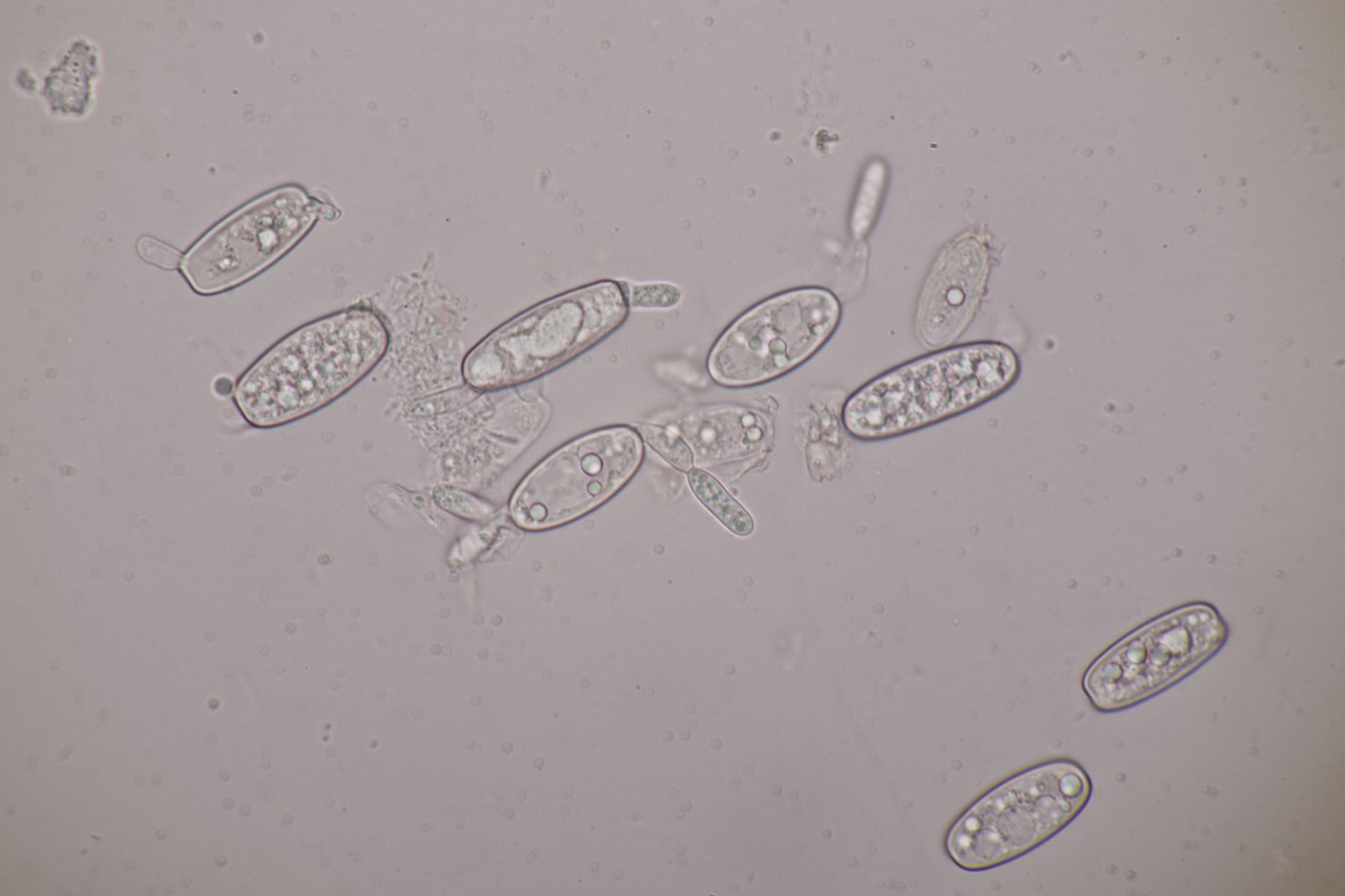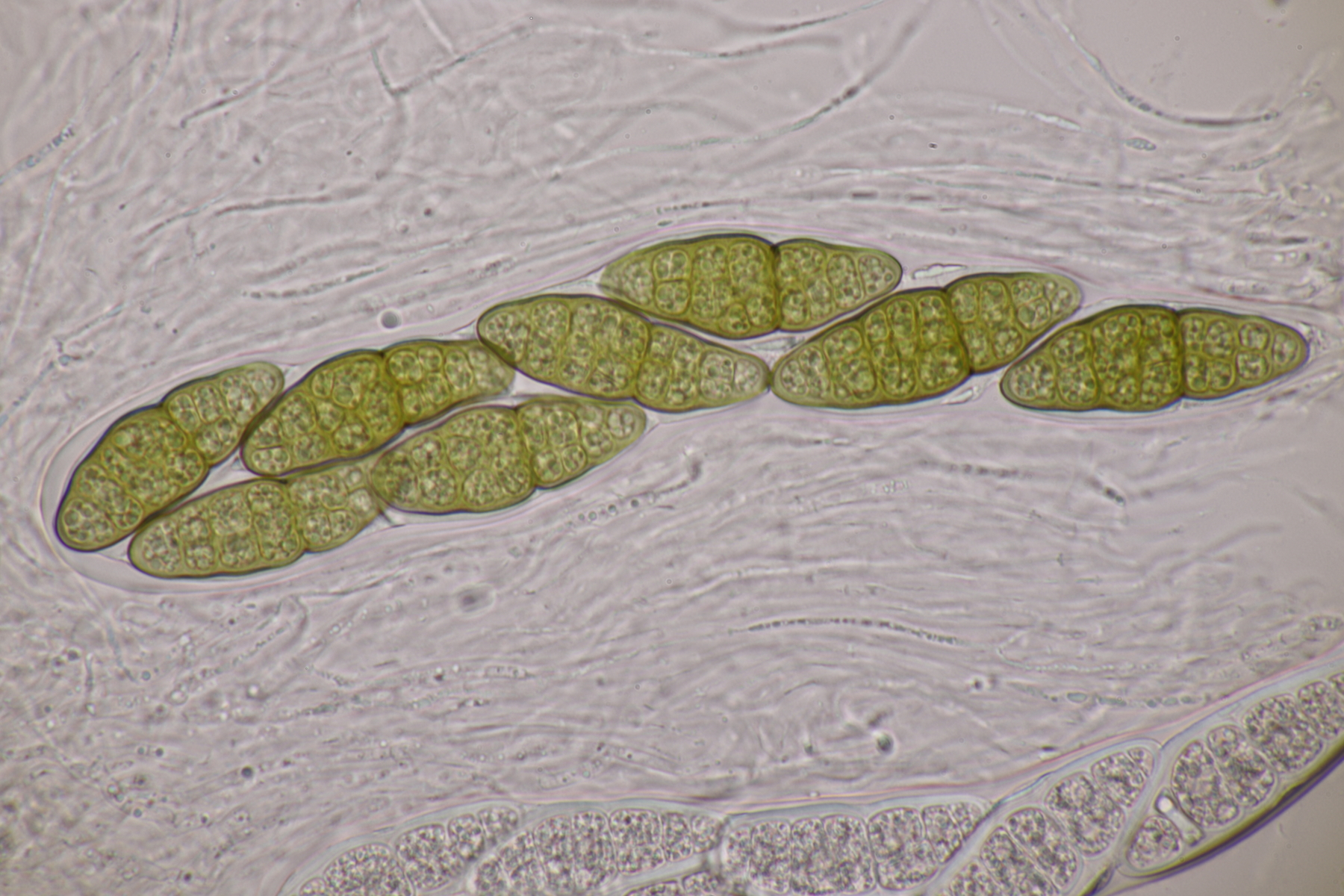 3. Sarcoscypha sp. Ich wollte dann doch nicht jeden fotografierten Fruchtkörper mikroskopieren und offenbar wachsen dort beide Arten durcheinander