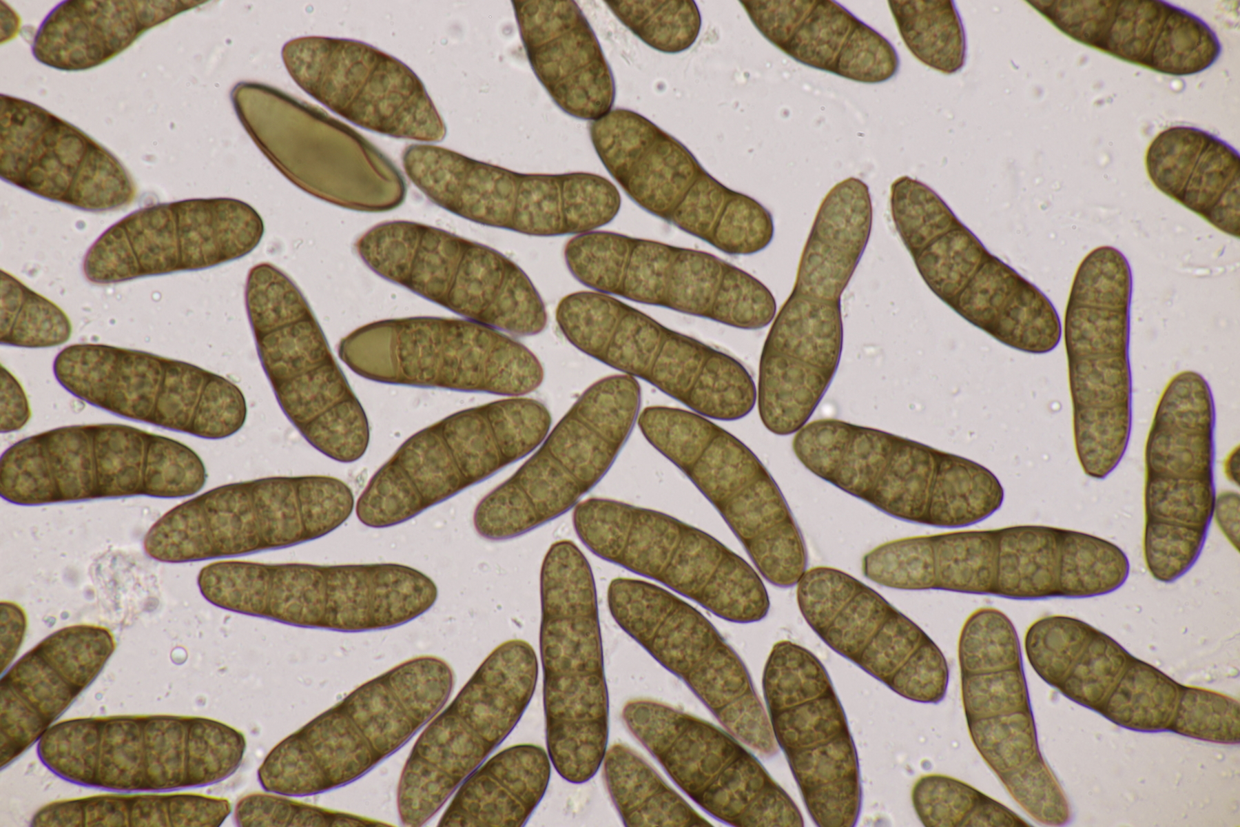10. Vermutlich eine Diaporthe an Tilia sp. Ellis und Ellis listen da D. velata, die mittlerweile mit D. eres synonimisiert ist. Die sollte aber Anhängsel an den Sporen haben.