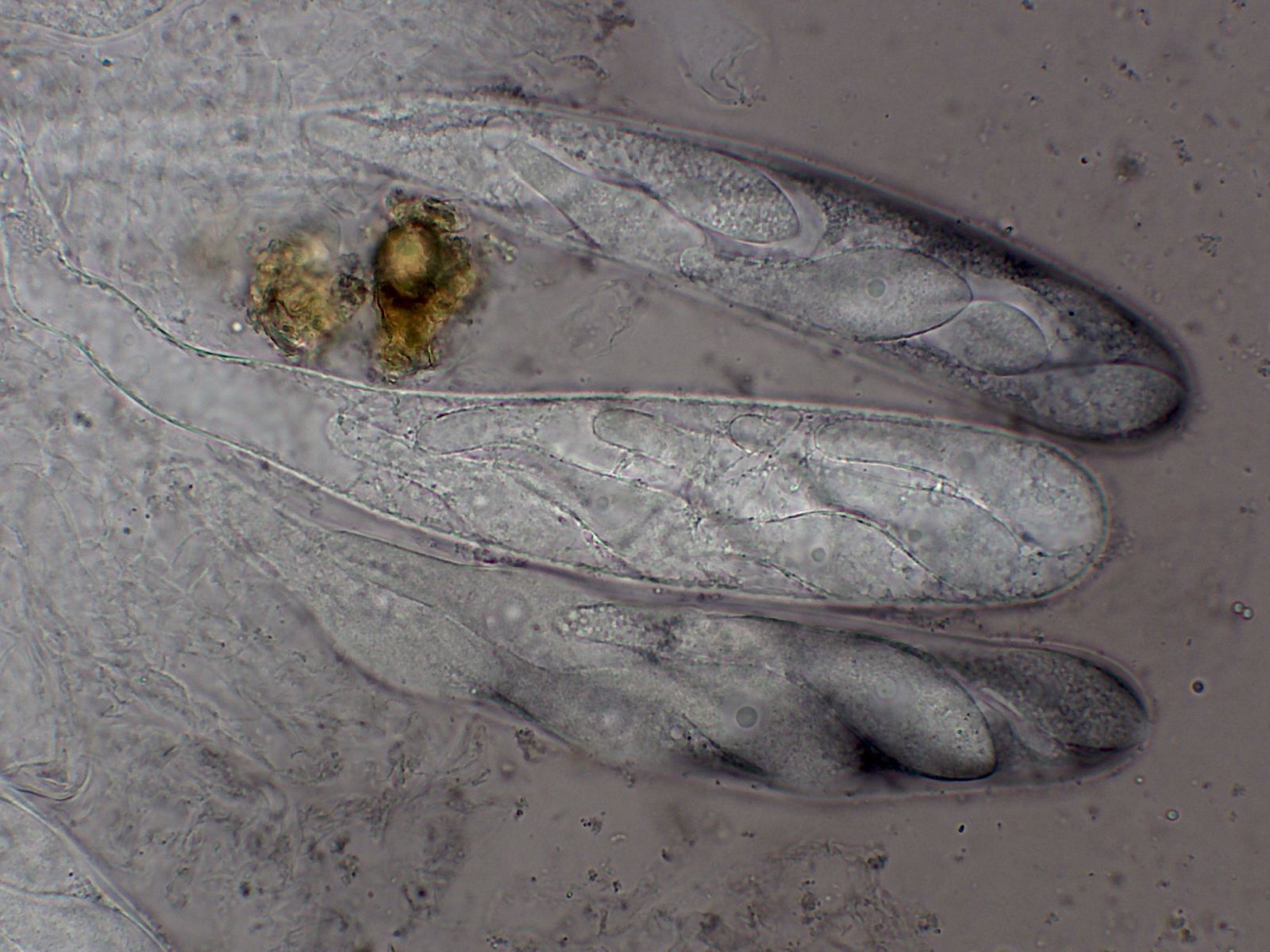 Hier noch spaßhalber die andere Podospora, aber da habe ich nur eine Spore geknipst.