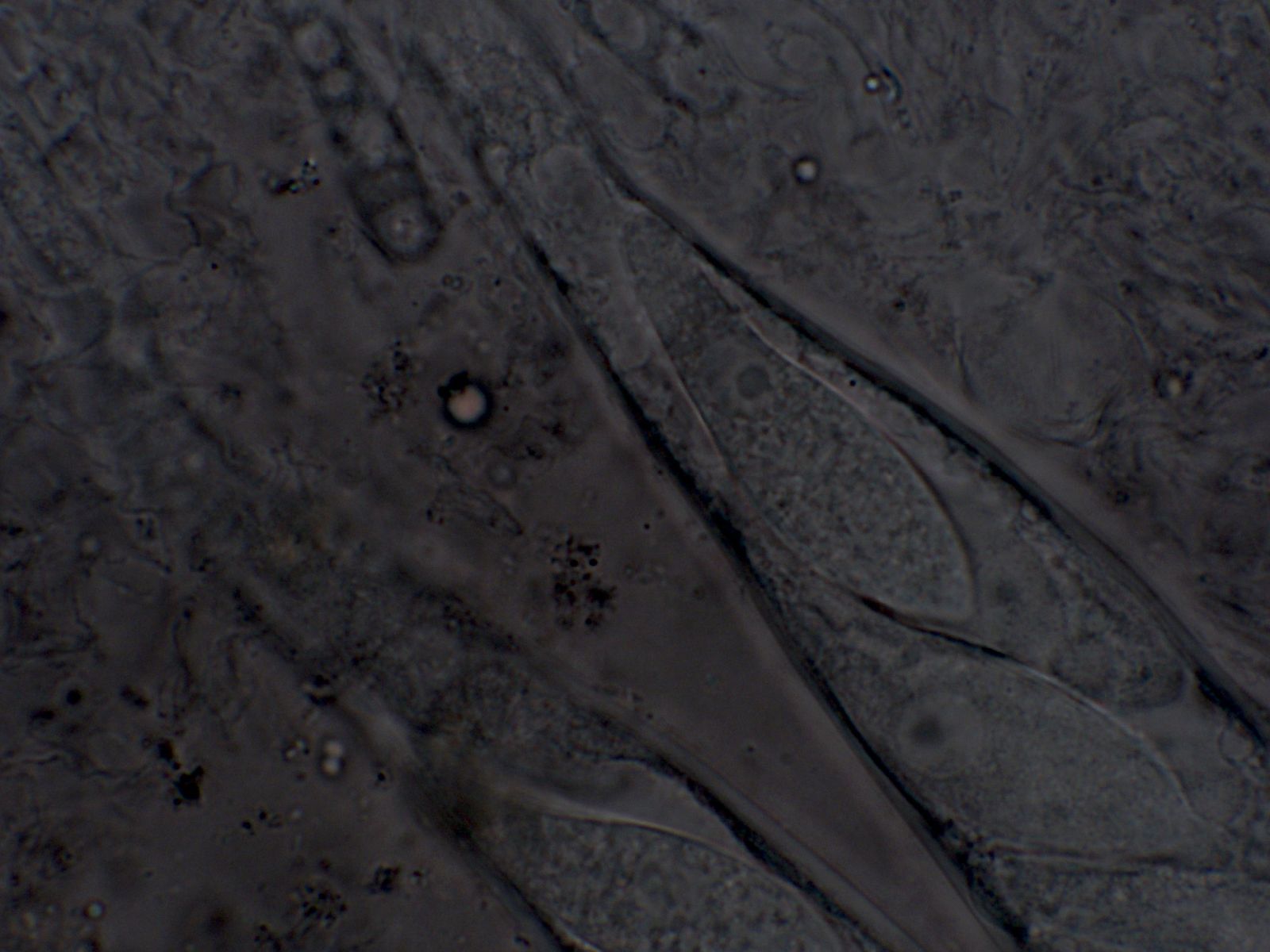 Länge etwa 50 µm, mit einem riesigen Zellkern der alleine schon 8 µm Durchmesser hatte.