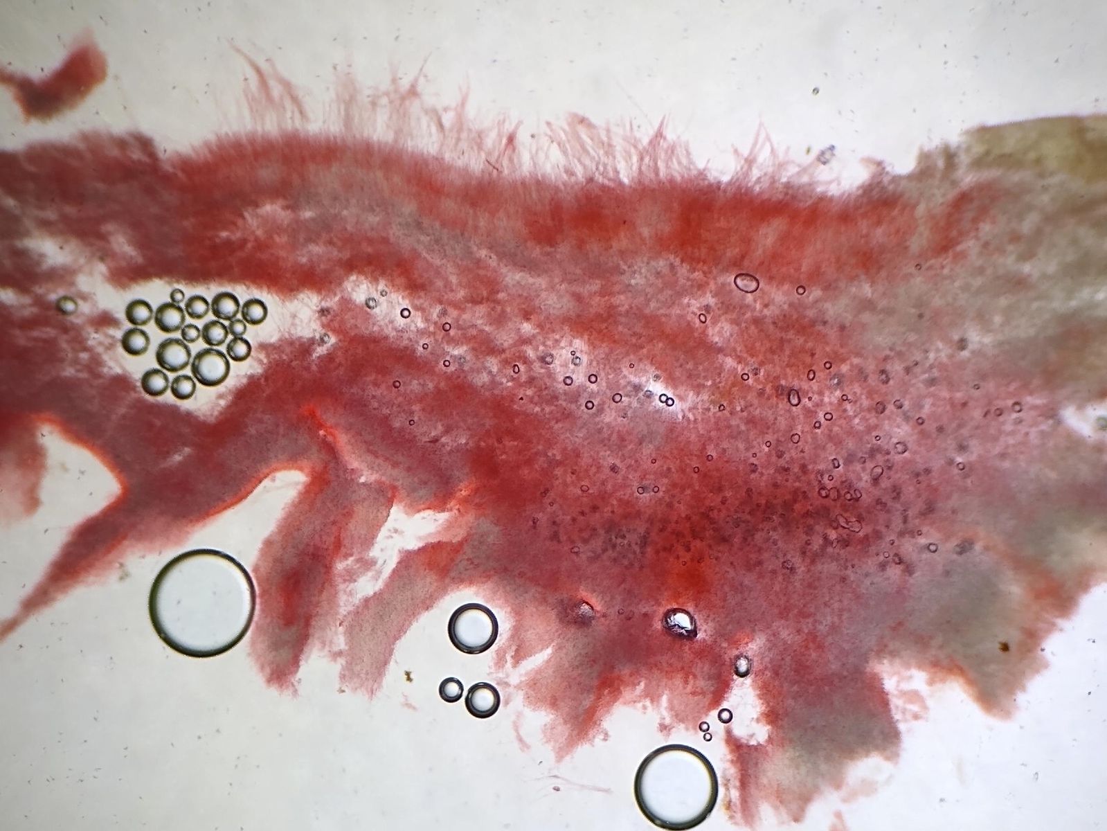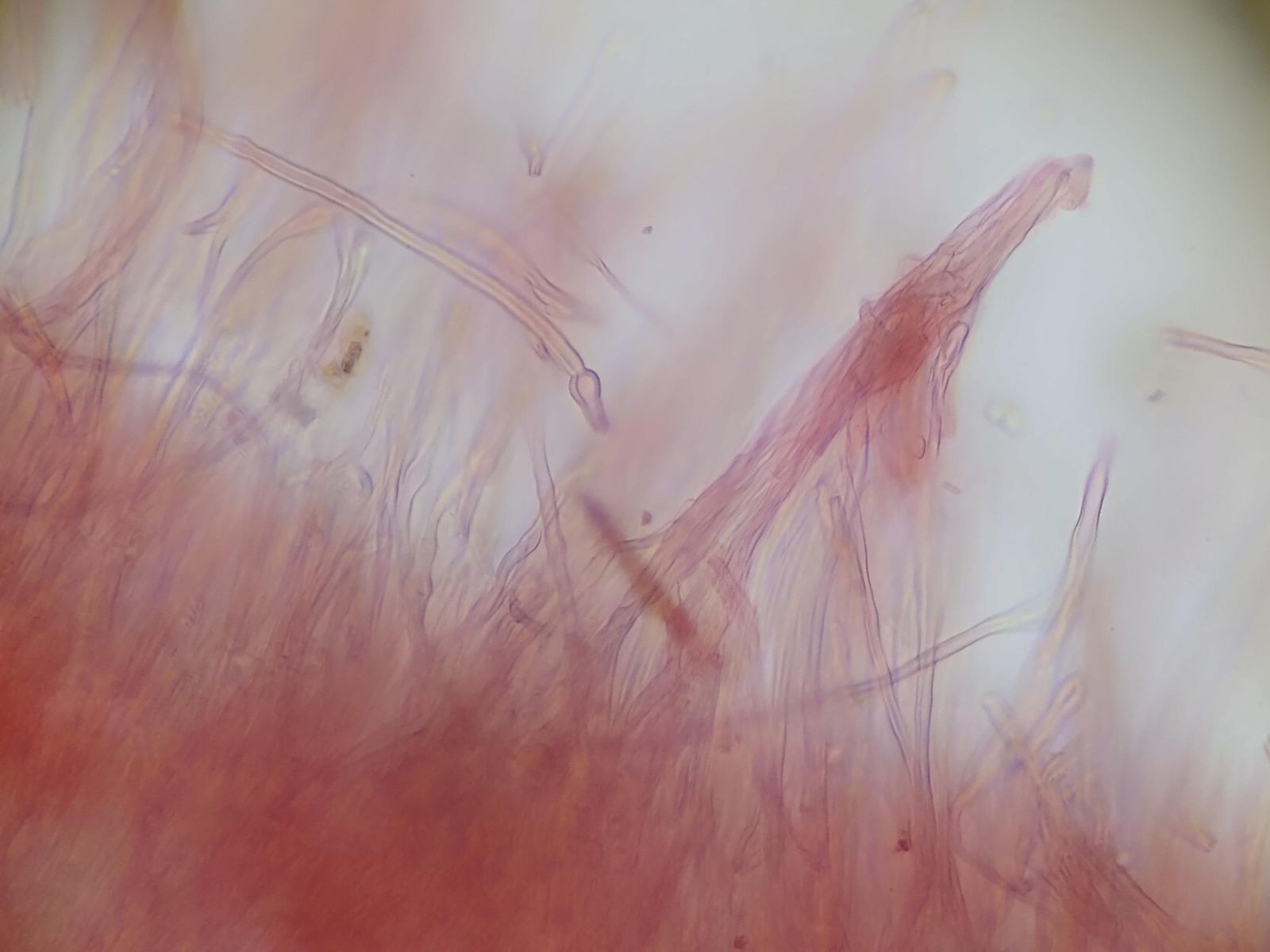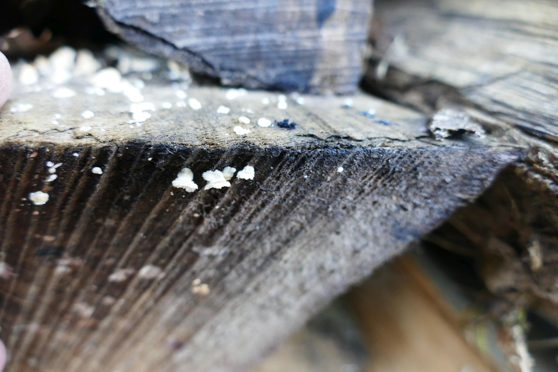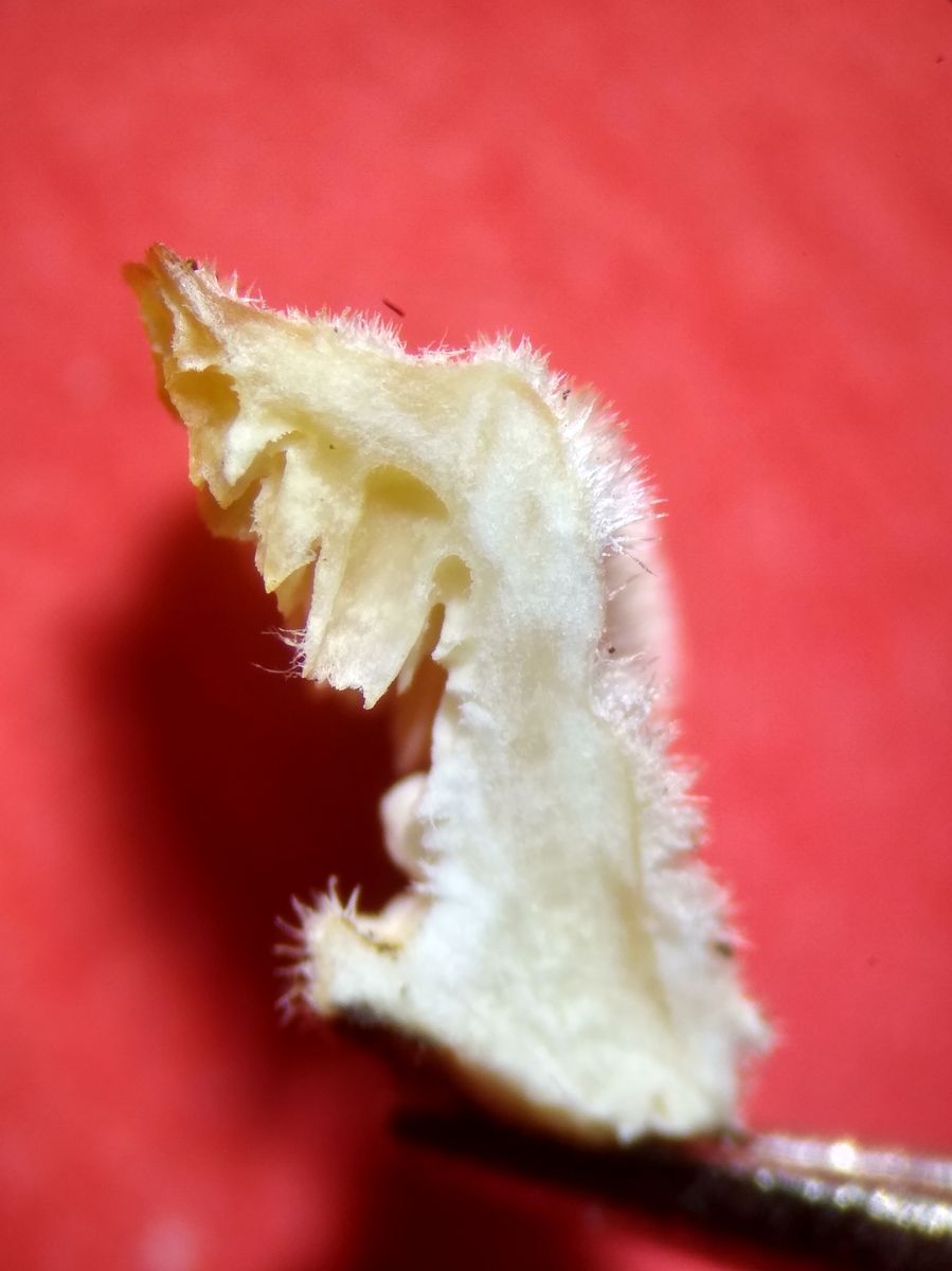 gerade gehe ich die Bilder von heute durch und entdecke einen kleinen, weißen, haarigen Pilz, mit seitlichem Stiel, der weder richtige Poren, Lamellen noch Adern hat.