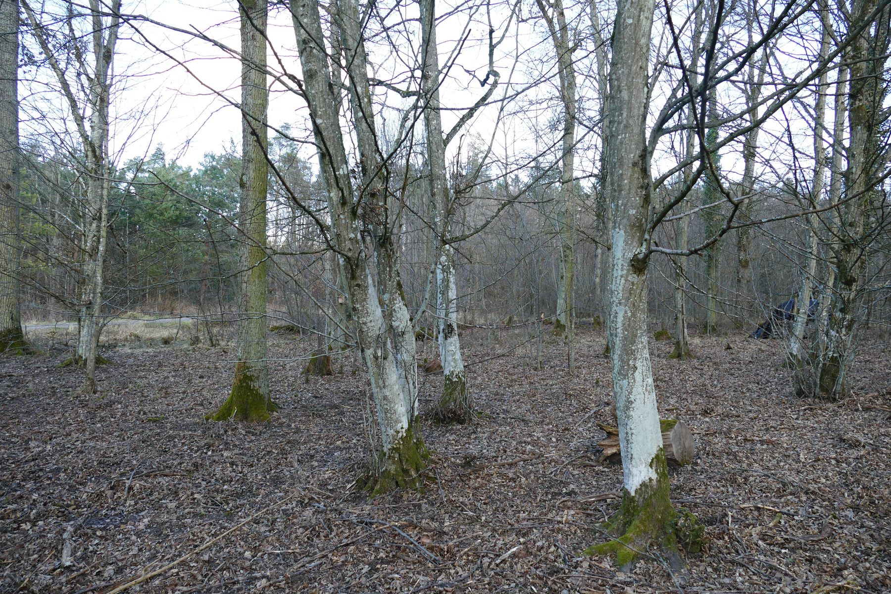 Auf einer freieren Fläche lagen zwei Baumstämme dicht beisammen.