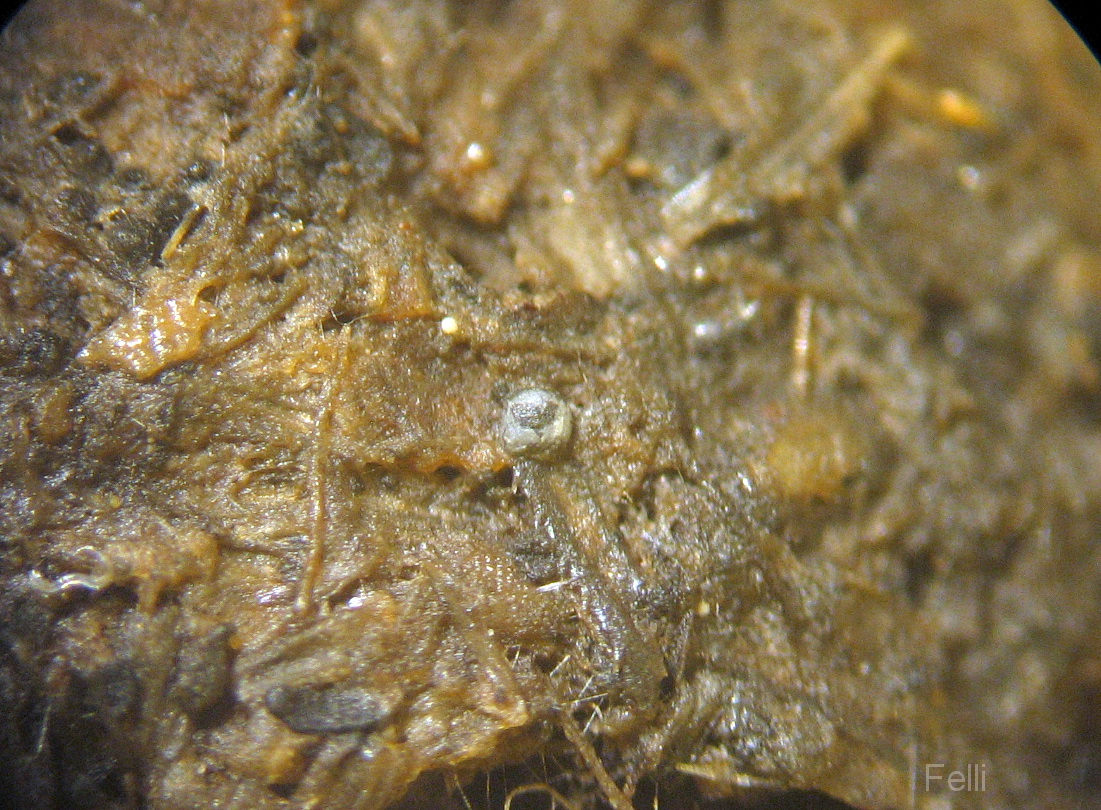 Gegen D. dubium spricht, das der Kalk auf der Peridie kristallförmig sein müßte, was er aber nicht ist. So spricht mehr für Didymium difforme. Die Art müßte normalerweise eine feste Peridie haben, aber Dein Foto vom reifen Fruchtkörper spricht eher für eine Entwicklungsstörung. Auf den Mikrofotos (Nr. 2) sieht man aber ein Stück der Peridie, die aus dicht gepackten Schüppchen besteht. Das paßt gut. Auch die Sporen mit der hellerern Stelle auf einer Seite und die Skulptur passen. Ich denke, Du kannst Deinen Fund als Didymium difforme ablegen.
