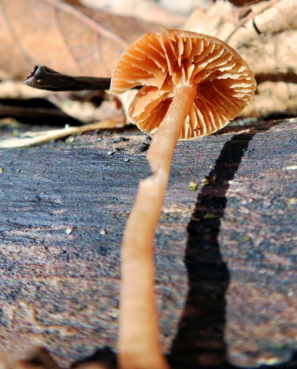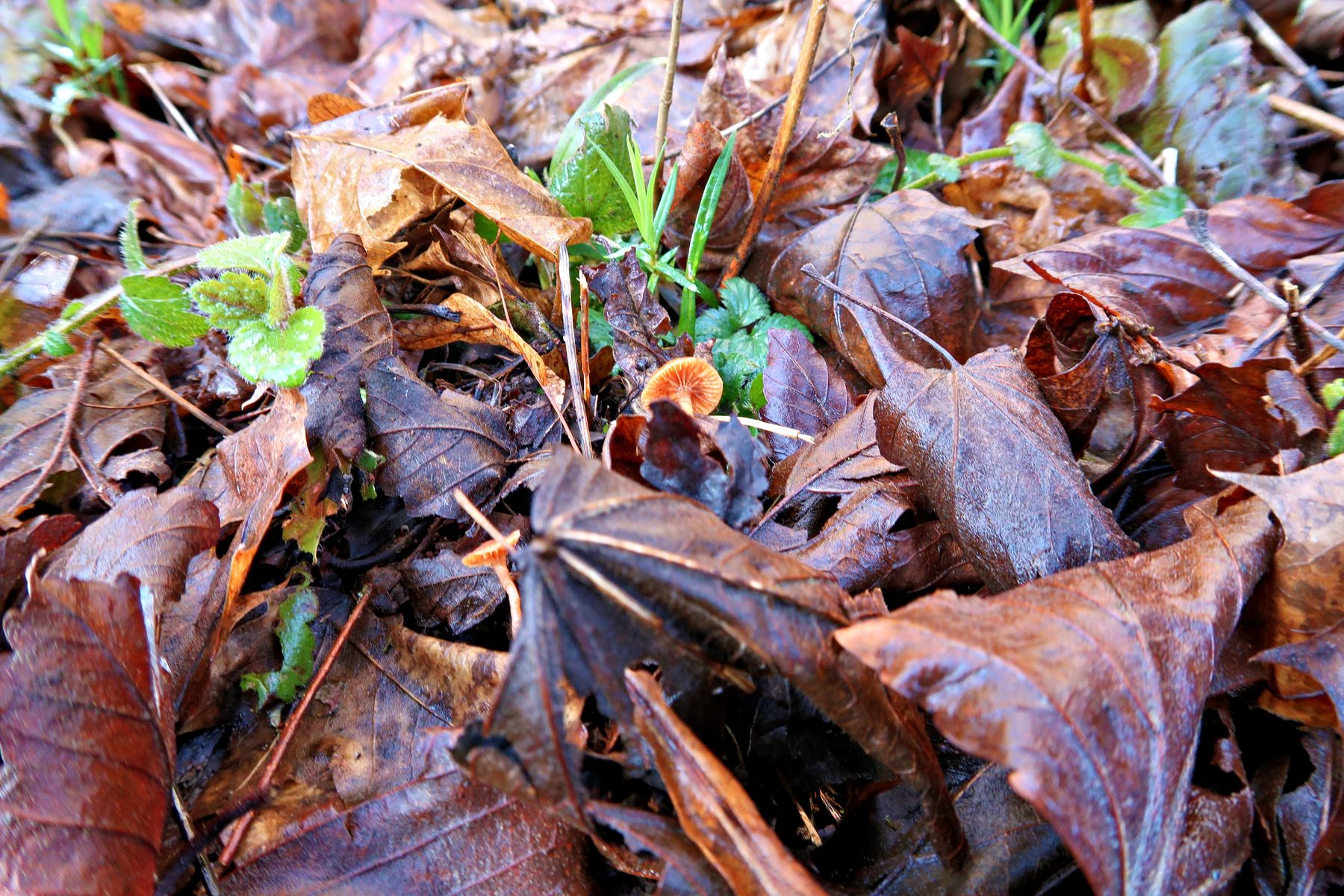 Als ich meine Kamera einpackte, bemerke ich, das ich die ganze Zeit auf 2 kleinen Häublingen (?), welche auf einem Laubblatt wuchsen herum getreten bin...