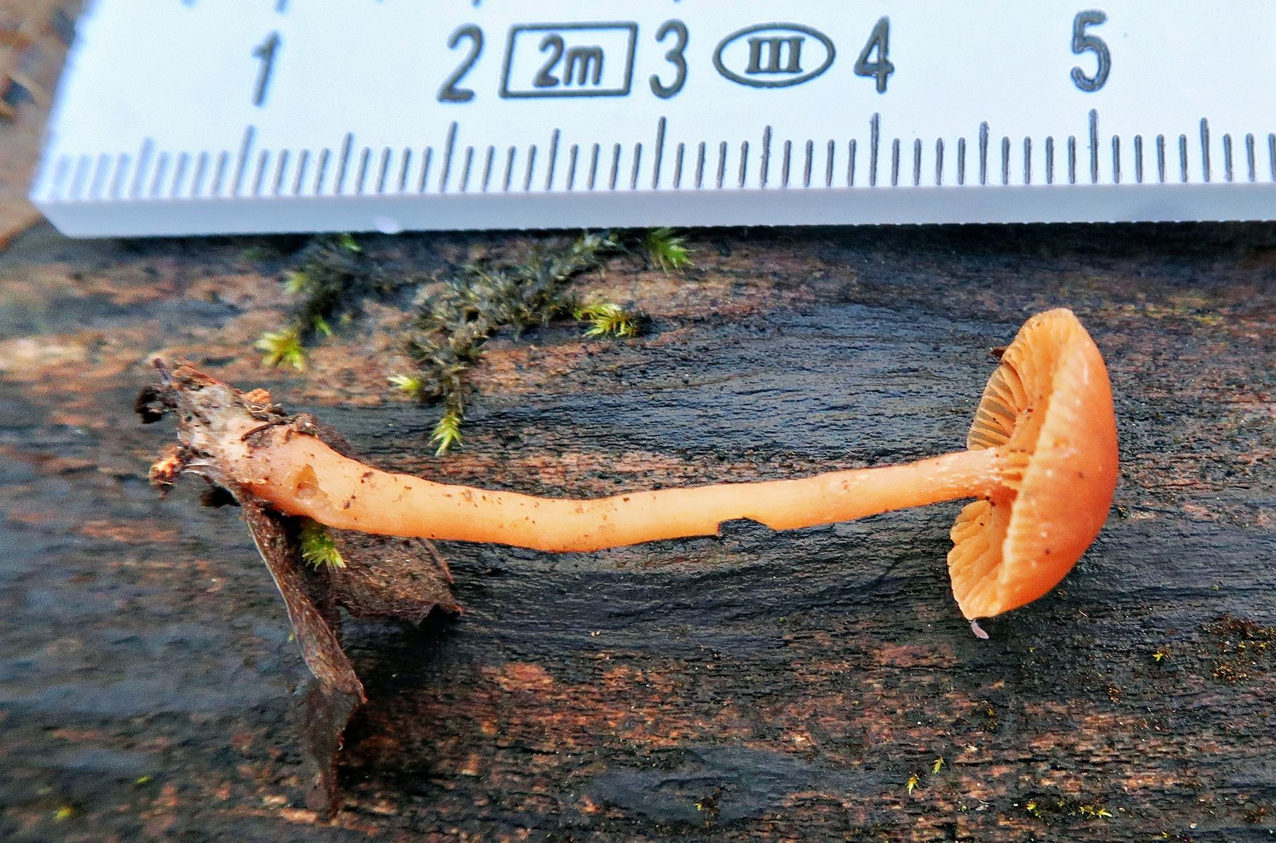 Habitat nahe einem Flusslauf, recht feuchte Gegend da. Die 2 Pilze wuchsen auf einem Laubblatt, das steht fest. Um welches Blatt es sich handelte, kann ich leider nicht sicher sagen, da am Pilz nur noch ein kleiner Rest hing. Ich vermute jedoch, da dort fast ausschließlich Ahorn stehen, das es ein solches Blatt gewesen ist.