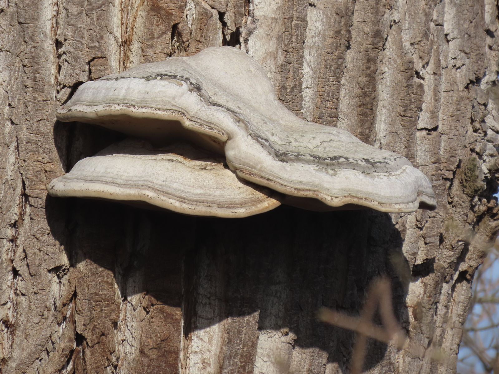 Gerade an diesen alten, teils riesigen Pappeln in den Rheinauen werden die Fruchtkörper gigantisch:Ich hab' da nie drüber nachgedacht, aber wo du es erwähnst: An Pappeln sehe ich öfter außergewöhnlich große Fruchtkörper als an Rotbuche. Wobei die Variationsbreiten grundsätzlich gleich sind (ist ja die selbe Art), aber irgendwie scheinen die aus diesen riesigen, alten Pappelstämmen so effizient Nährstoffe ziehen zu können, daß da häufiger gewaltige Fruchtkörper gebildet werden.