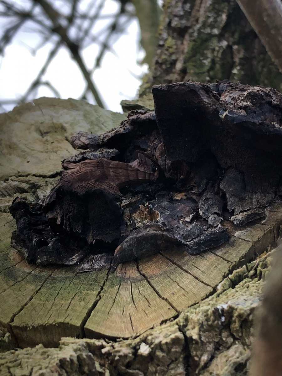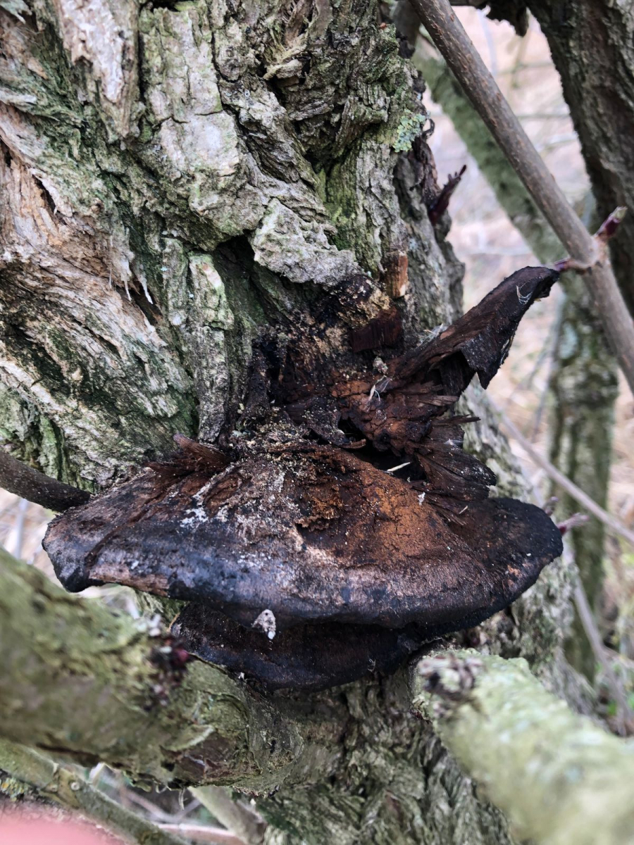 also ob bei so einem ollen schwarzen Teil noch was schillert oder nicht halte ich für wenig aussagekräftig - das typische Schillerporlingsschillern kann es sicherlich nicht mehr sein. Was mich stutzig macht ist die angedeutete Zonierung zum einen, und zum anderen dass der einzige so aussehende überständige Schillerpolring - Inonotus hispidus - auch in so altem Zustand eigentlich noch deutlich striegelig sein müsste, was ich auf den Bildern nicht erkennen kann. 10 cm wäre ziemlich klein für Inonotus hispidus.