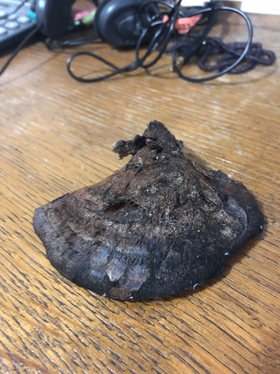 Der Durchmesser ist 10cm. Das sollte ein Inonotus sein weil der Schillereffekt noch ein bisschen vorhanden ist was auf dem Bild nicht zu sehen ist.