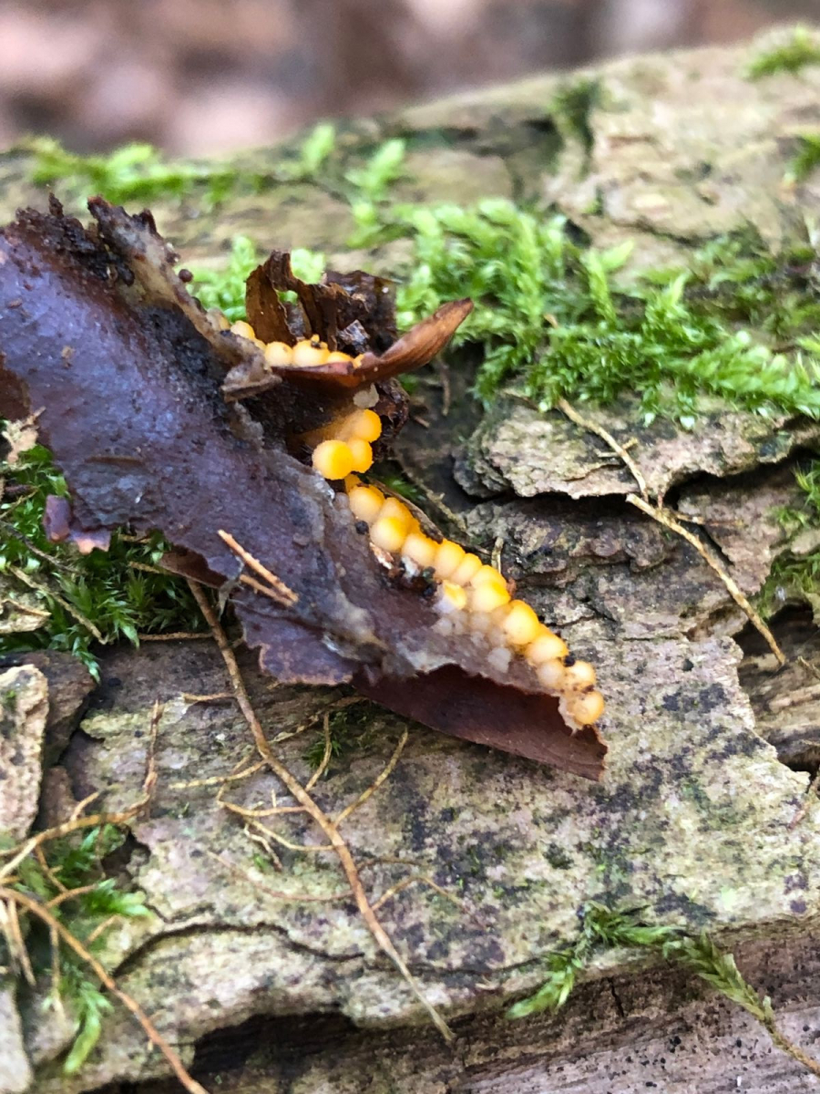 auch wenn die bisherigen Bestimmungsvorschläge in eine bestimmte Richtung gehen, würde ich eine der gelben Hymenoscyphus-Arten nicht ausschließen.