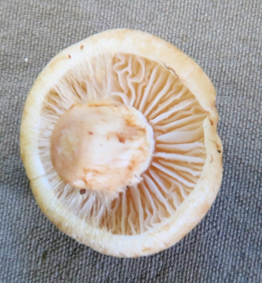 Lamellen: fast weiß, leicht gekräuselt, am Hutrand Lamelletten