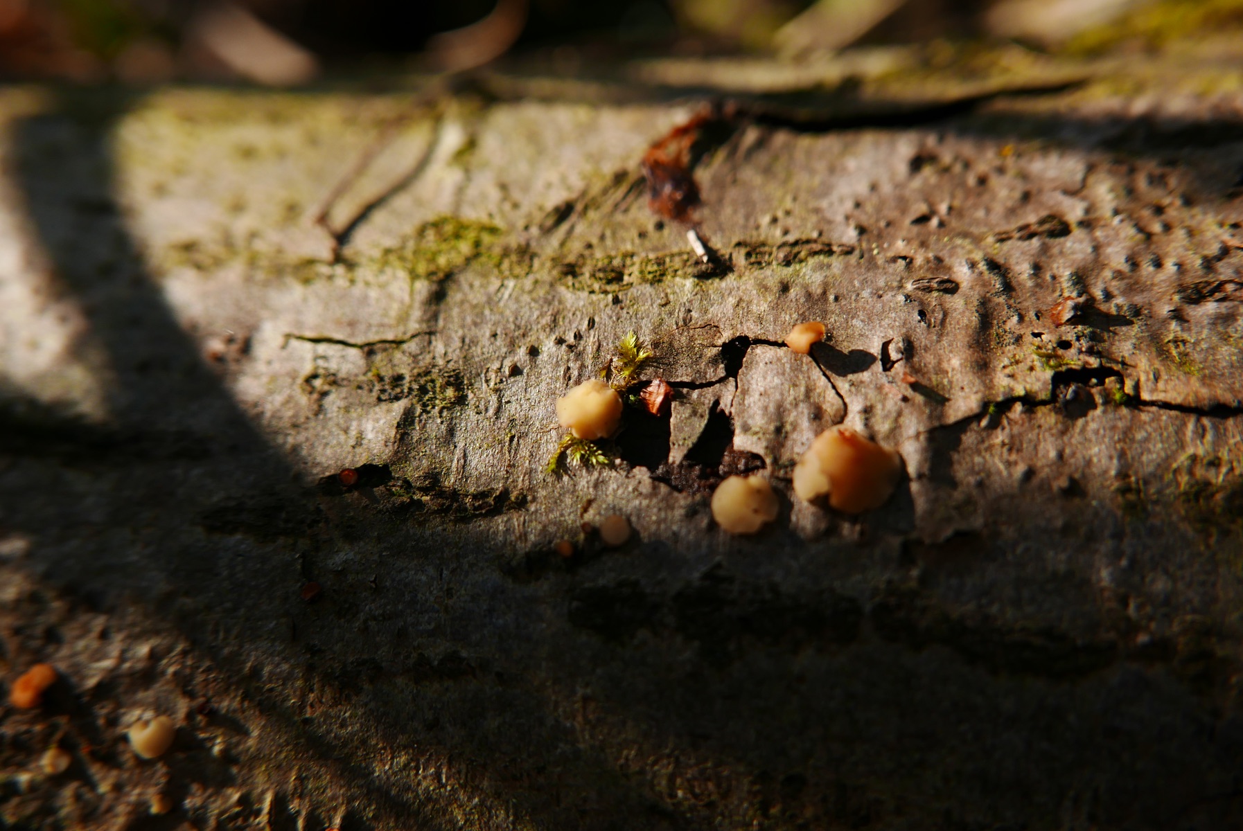 05. Auf diesem liegenden Baumstamm fand ich im letzten Jahr schon Erlenkätzchen-Becherlinge, da muss ich mich nicht ganz so tief bücken