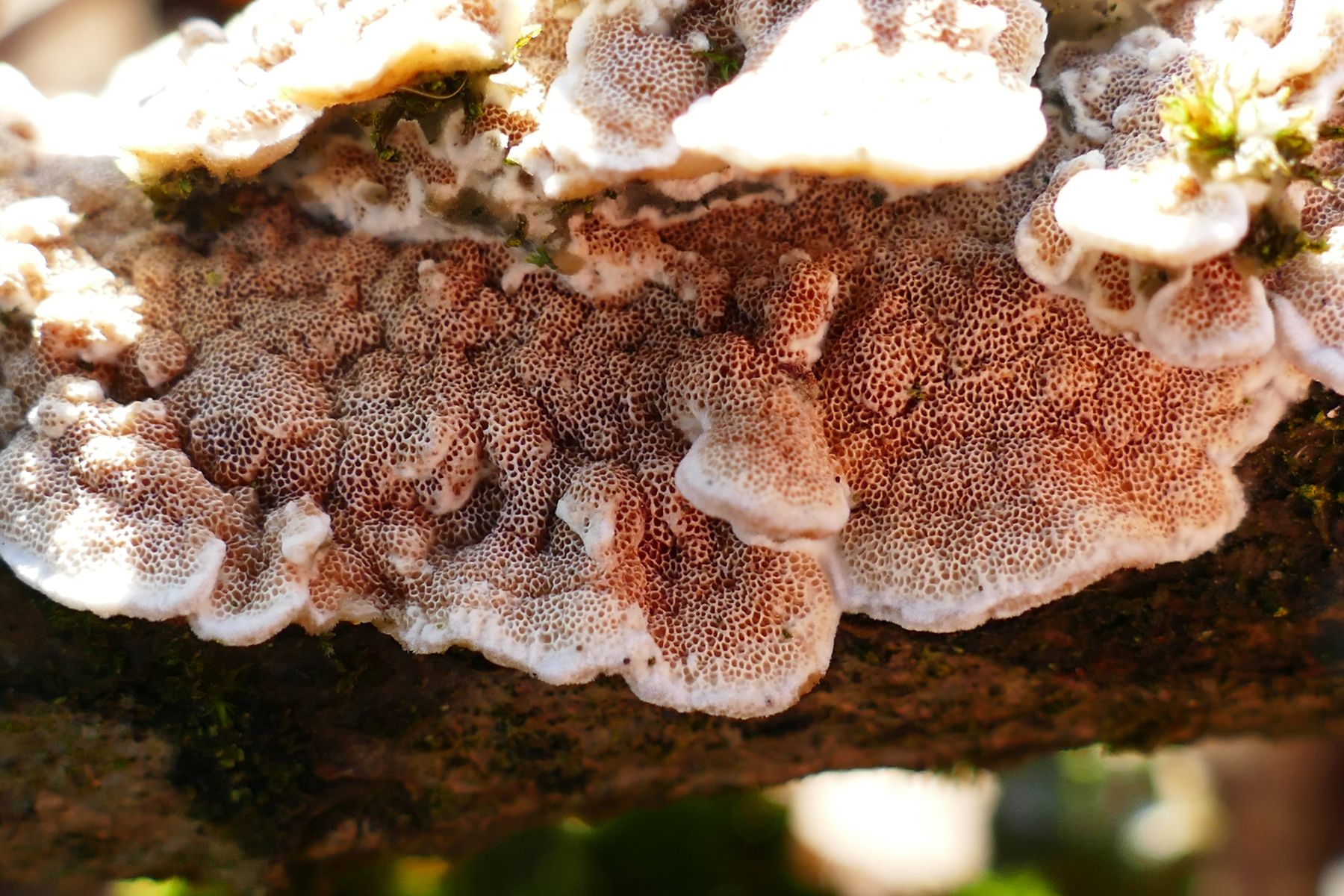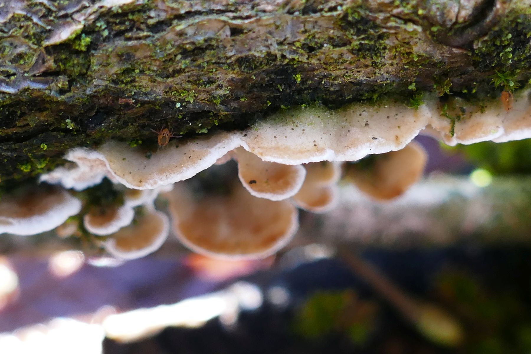 Skeletocutis etwa? Der würde Nadelholz bevorzugen.