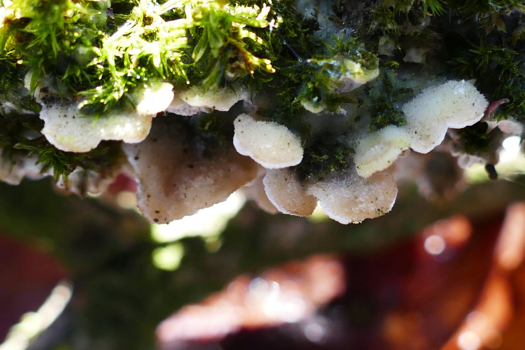 Wenn man die Oberseite des Hüte betrachtet, fällt einen struppige Behaarung auf, die sich bis zum Substrat fortsetzt: