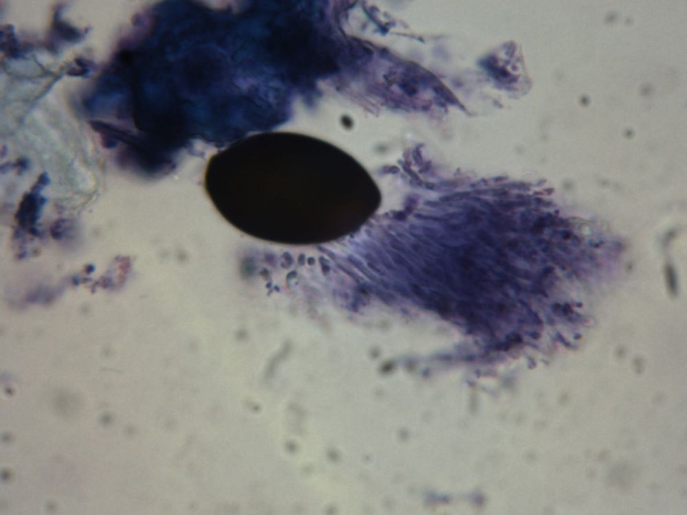 Typisch sind die Tuberkel am Perithecienhals, ebenso das Substrat (Leporidenlosung).