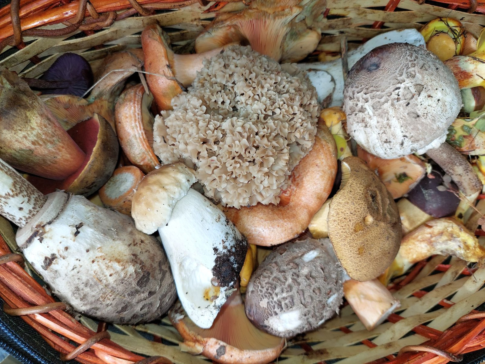 Um es kurz zu machen. Bei 40! krause Glucken haben wir aufgehört zu zählen bzw. den Faden verloren. Es gab Steinpilze, Maronen, Goldröhrlinge, einige Reizker, Kupferrote Gelbfüße, Rotfußröhrlinge, Schopftintlinge, Stockschwämmchen... hab ich noch was vergessen ...paar Birkenpilze. Viel Sachen haben wir gesehen, Täublinge, Hundsrute, Tintlinge, Lungenseitlinge.