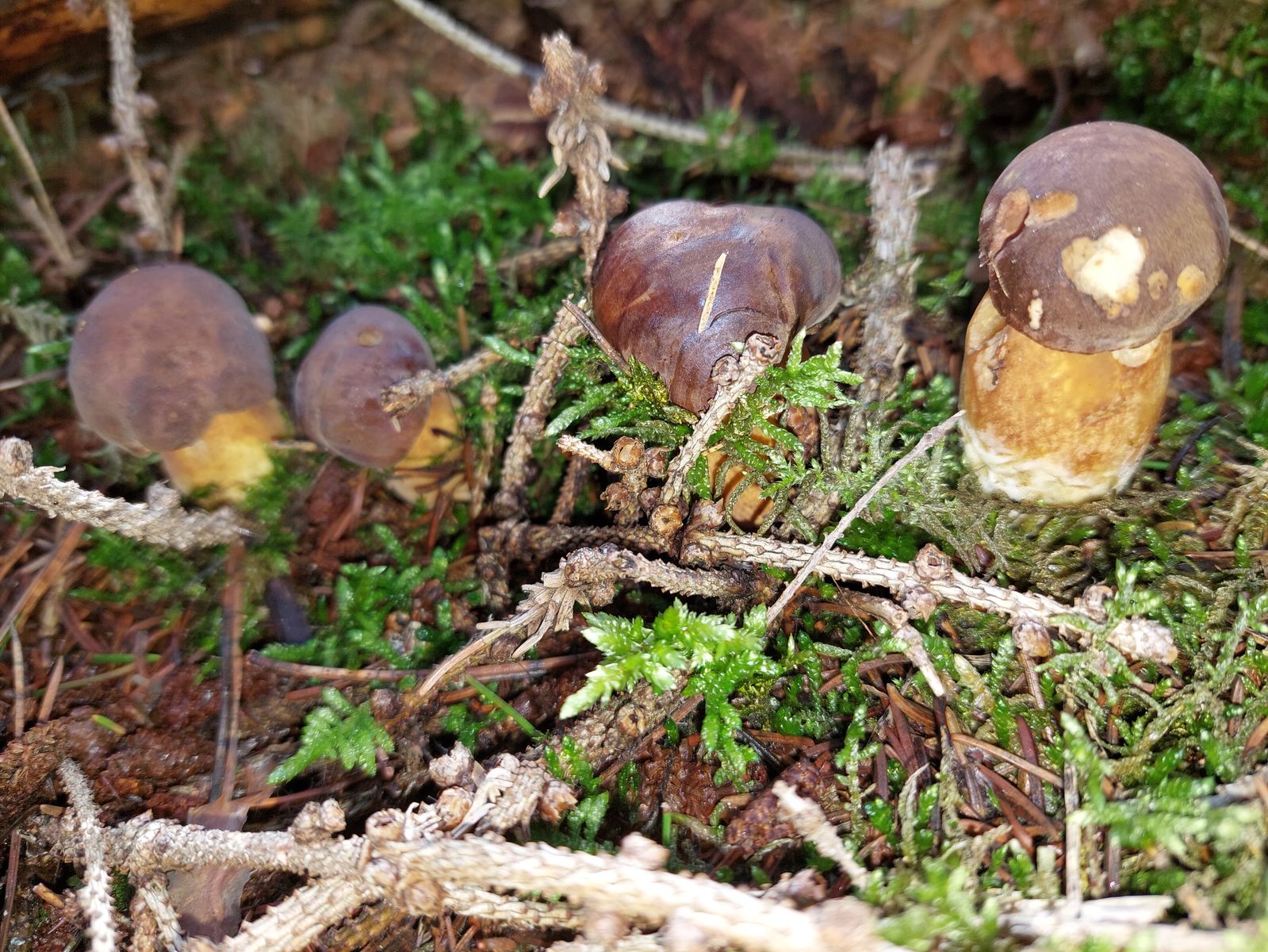 Auf dem Weg ein Dutzend Butterpilze geerntet, dann eine Marone und siehe da, ein Steinpilz.