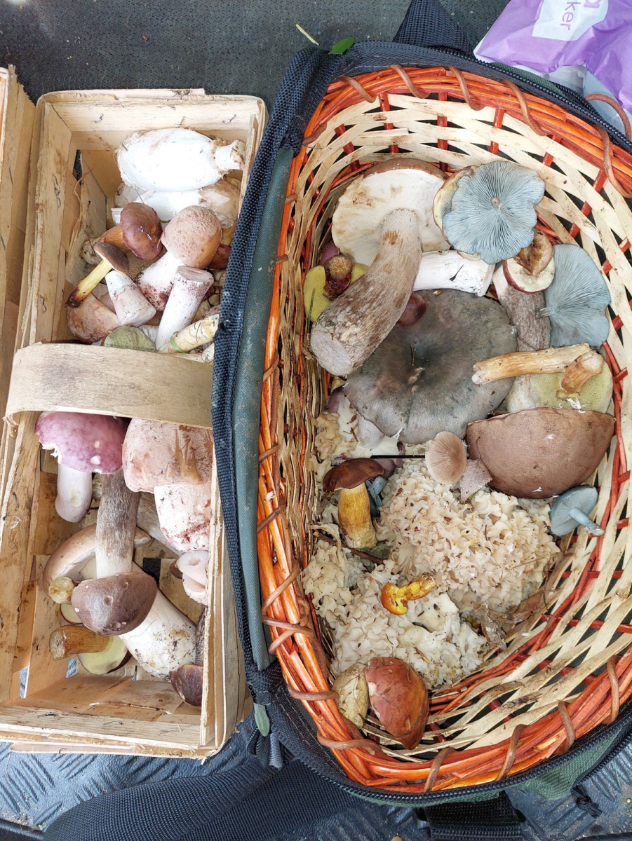 Der Täubling war wahrscheinlich ein Speisetäubling, und ein Körnchenröhrling ist noch mit dabei, aber im Korb nicht zu sehen.