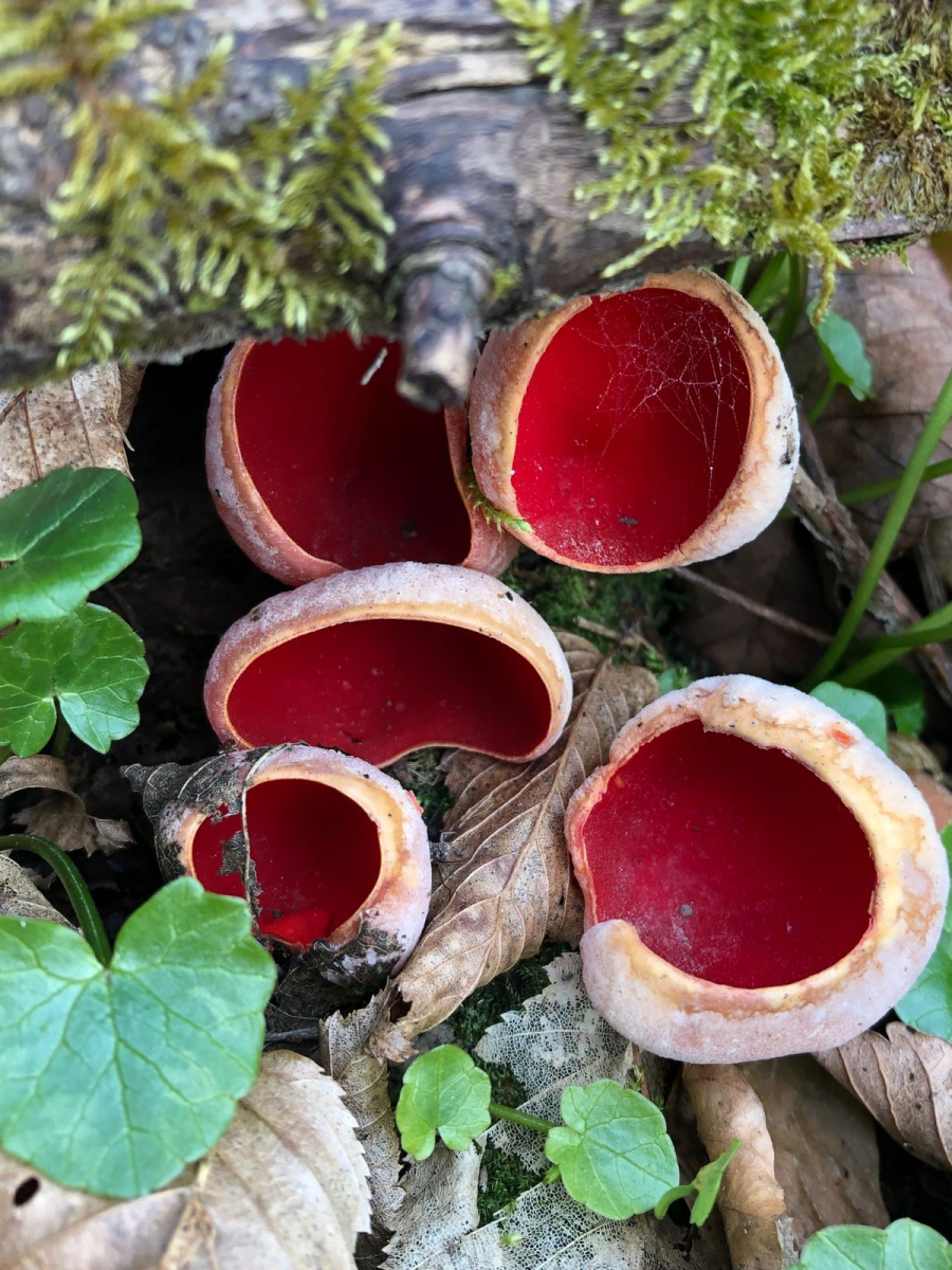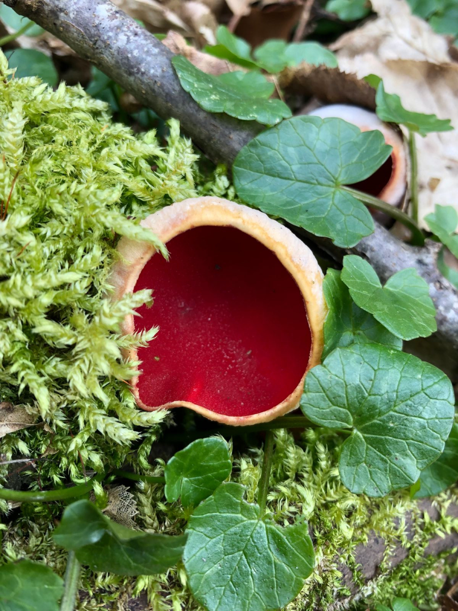 Zuerst hat ja so ausgesehen als wäre nix da. Aber dann kamen die Österreicher (Sarcoscypha austriaca) und zwar massenhaft. An einer anderen Stelle die ich für Kelchbecherlinge gut hielt waren zwar keine, dafür zeigte sich dort eine andere Schönheit an Ahorn. Der Blaue Rindenpilz ist auch sehr eindrucksvoll vor allem wenn man einen ganzen mehrere Meter langen Ast findet der voll mit diesem Pilz ist. Hab noch nie einen Pilz mit so einem kräftigen blau gesehen. Außerdem zeigten schon die ersten Waldschlüsselblumen ihre gelben Blüten.