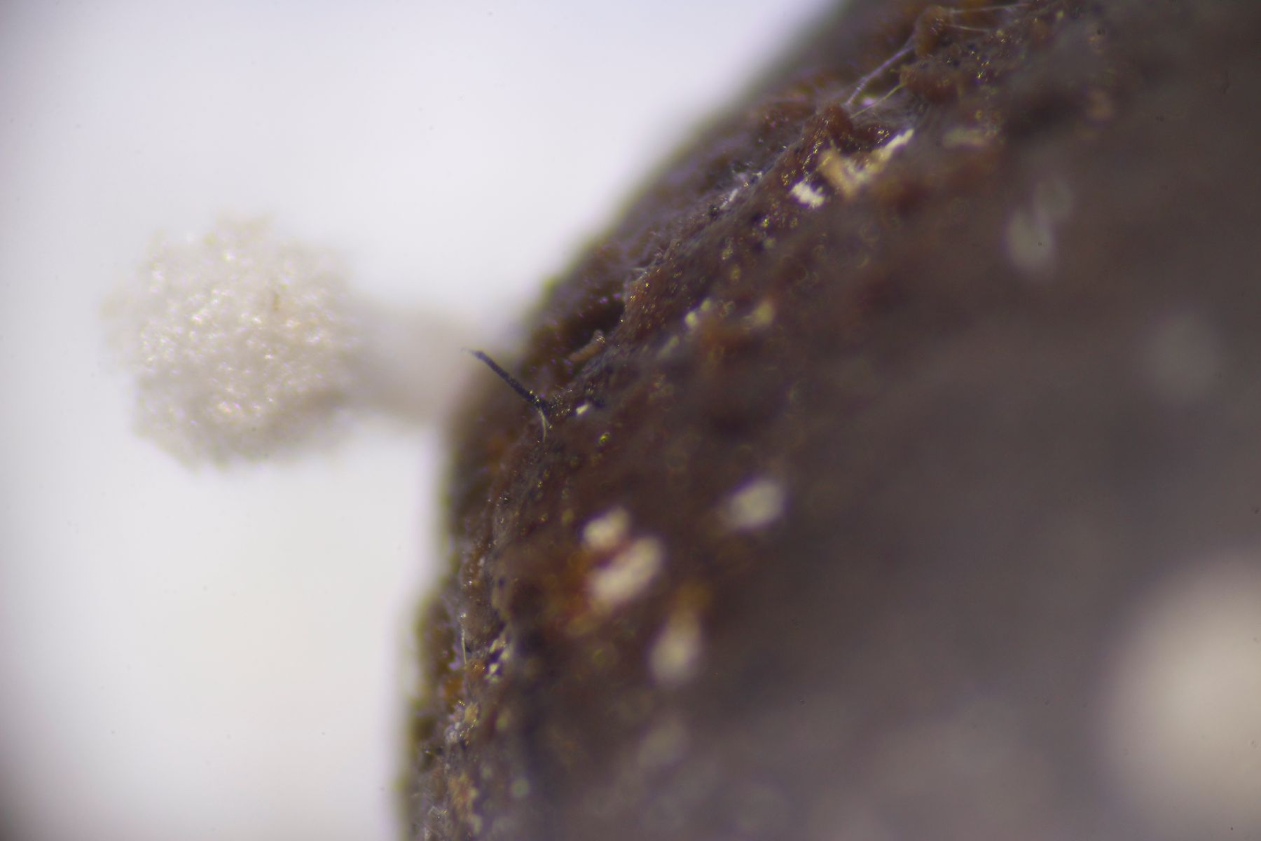 bei folgendem Pilz komme ich nicht wirklich weiter. Gefunden habe ich ihn auf Dammwilddung; immer mal wieder schauen Fruchtkörper heraus (sie sind aber sehr sehr klein).