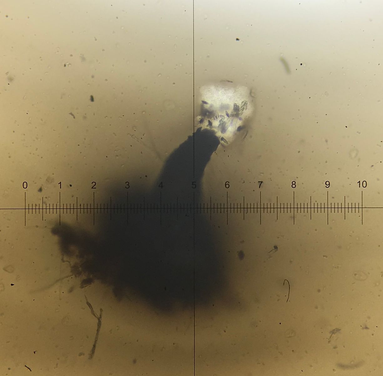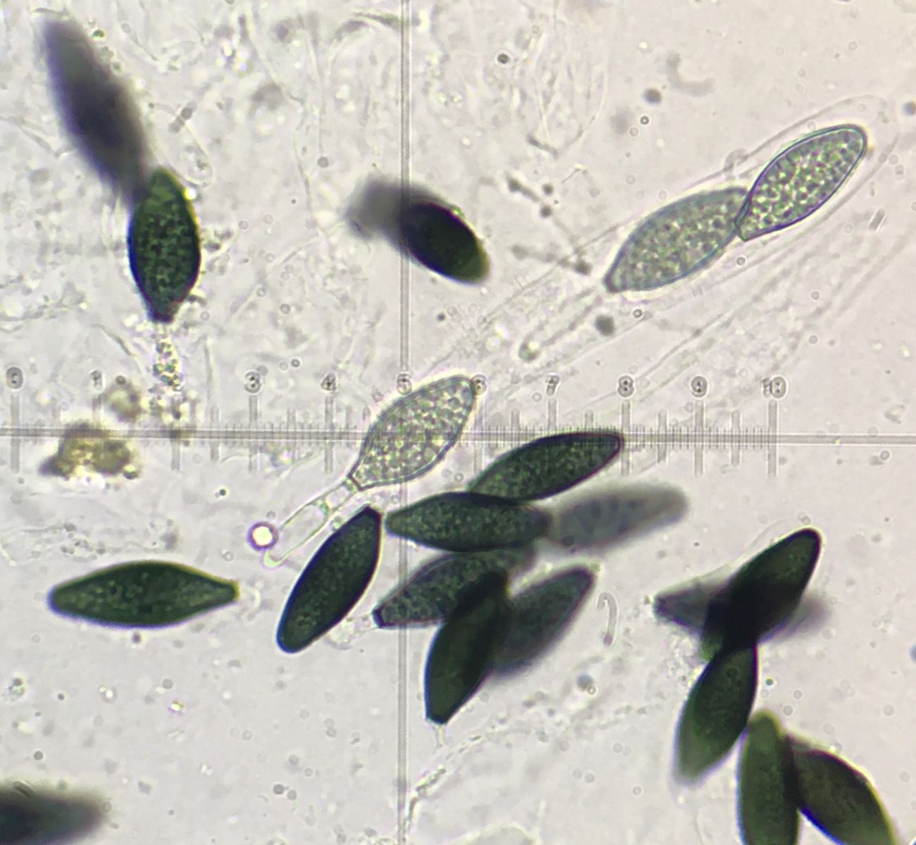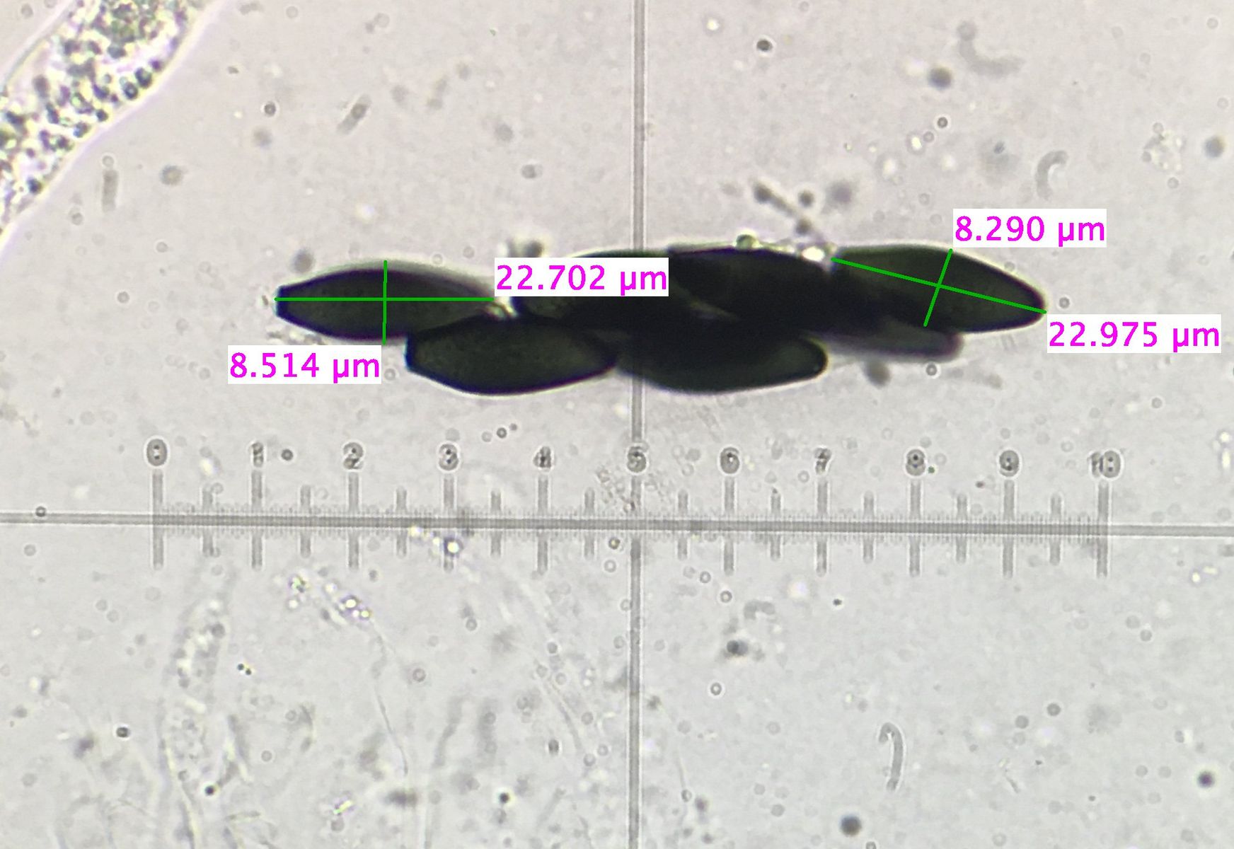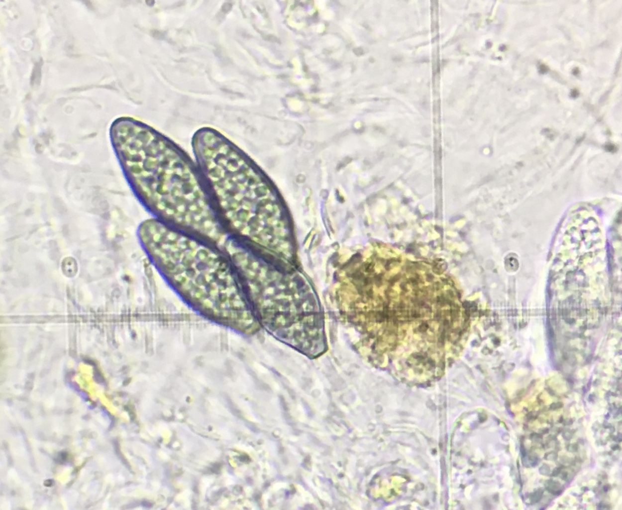 Das Bild vom Perithecium ist nicht das beste, aber es hat einen langen, schwarzen, unbehaarten Hals. Die unreifen Sporen habe ich leider nicht gut fotografiert.
