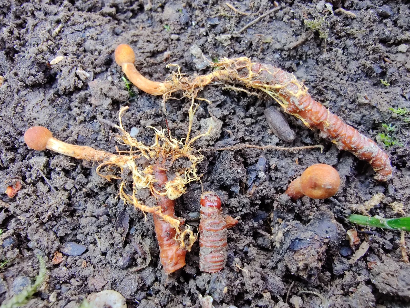 Fruchtkörper auf wenigen Quadratmetern gefunden. Das finde ich echt erstaunlich, wenn ich daran denke, dass unter jedem Fruchtkörper eine unschuldige Raupe steckt.