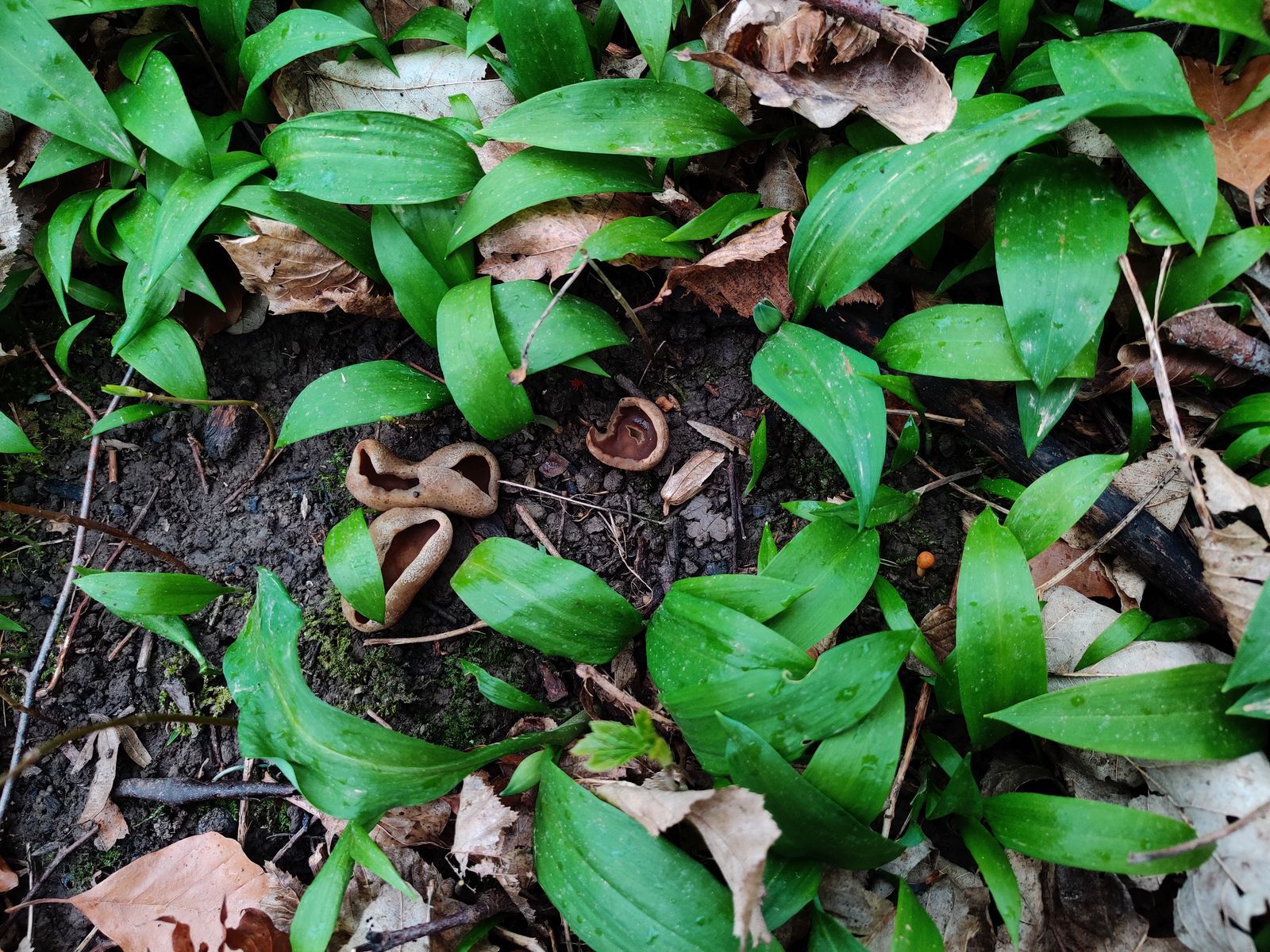 In direkter Nachbarschaft zu Morchelbecherlingen (Disciotis venosa)