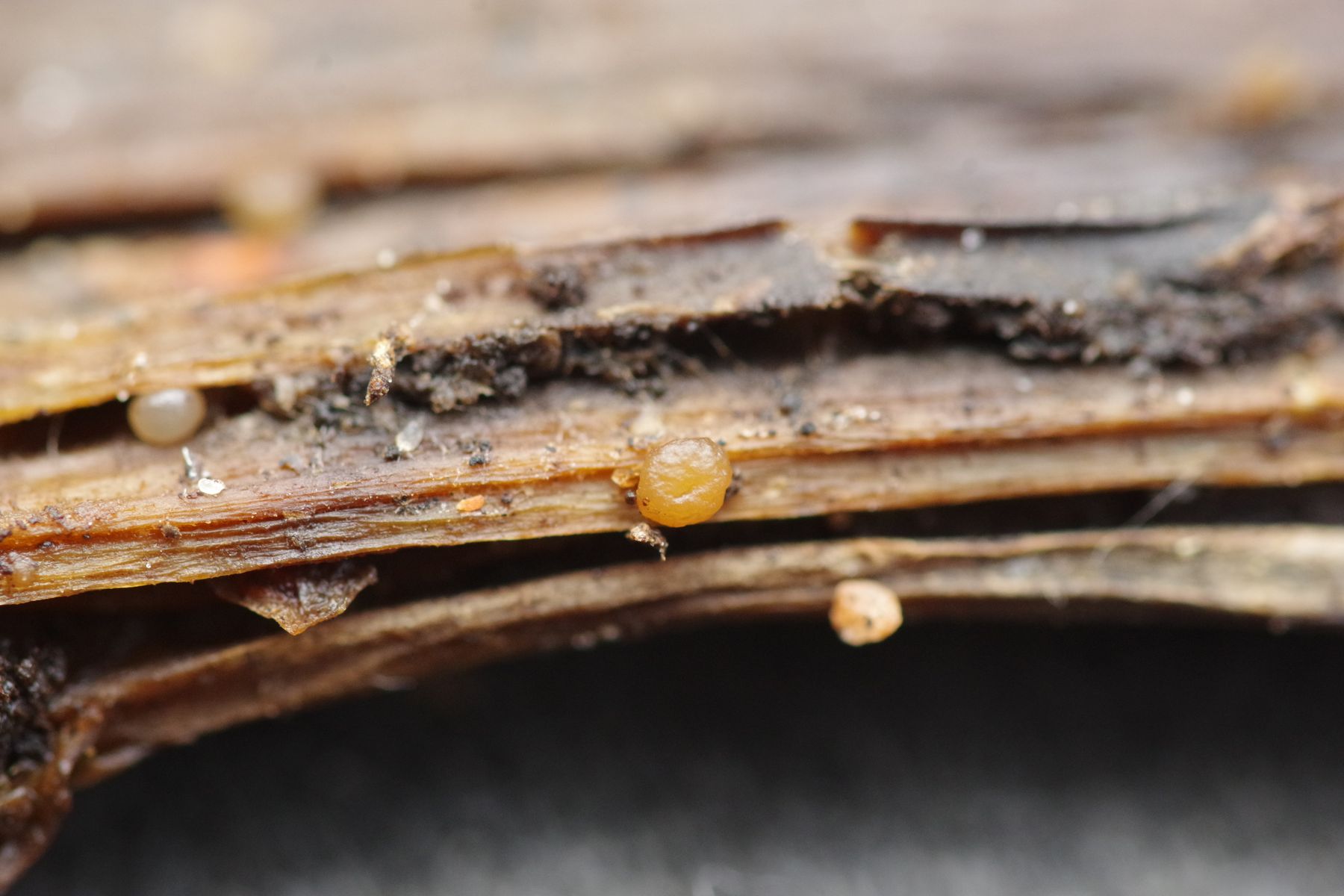 von gestern habe ich noch kleine (bis 3 mm) Gnubbel an vorjährigen Stängeln von Petasites hybridus. Keine Ahnung, was das sein könnte, vielleicht Sklerotien von einer Typhula. Mikrobilder habe ich nicht, auch keinen Schnitt. Vielleicht hat ja trotzdem eine Idee, was das sein könnte?