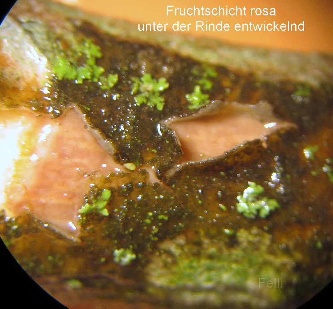 sieht ähnlich aus wie der Rindensprenger / Vuilleminia auf Eiche, nur halt rosa