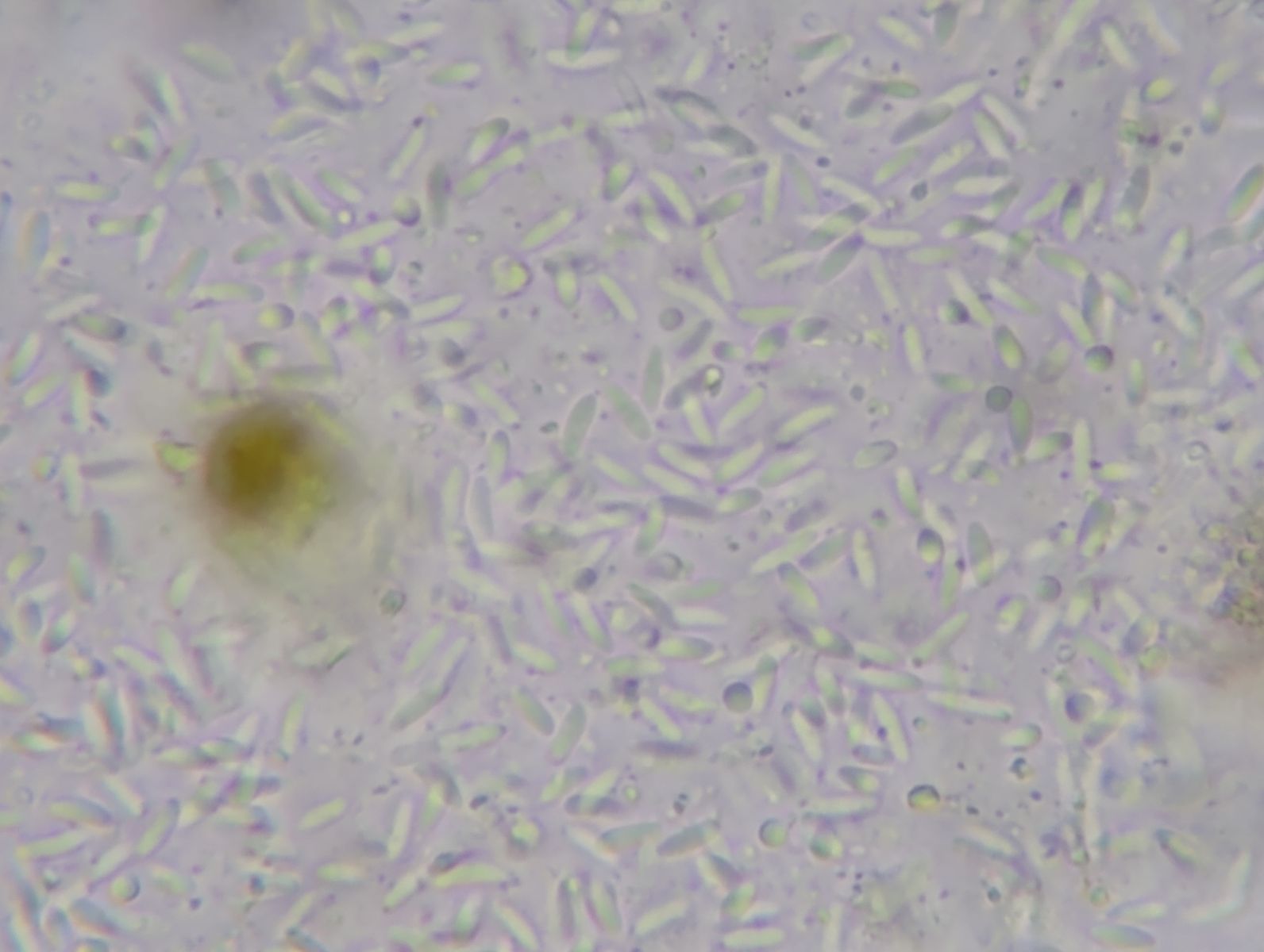 Unzählige hyaline, einzellige, zylindrische Sporen wurden freigesetzt.