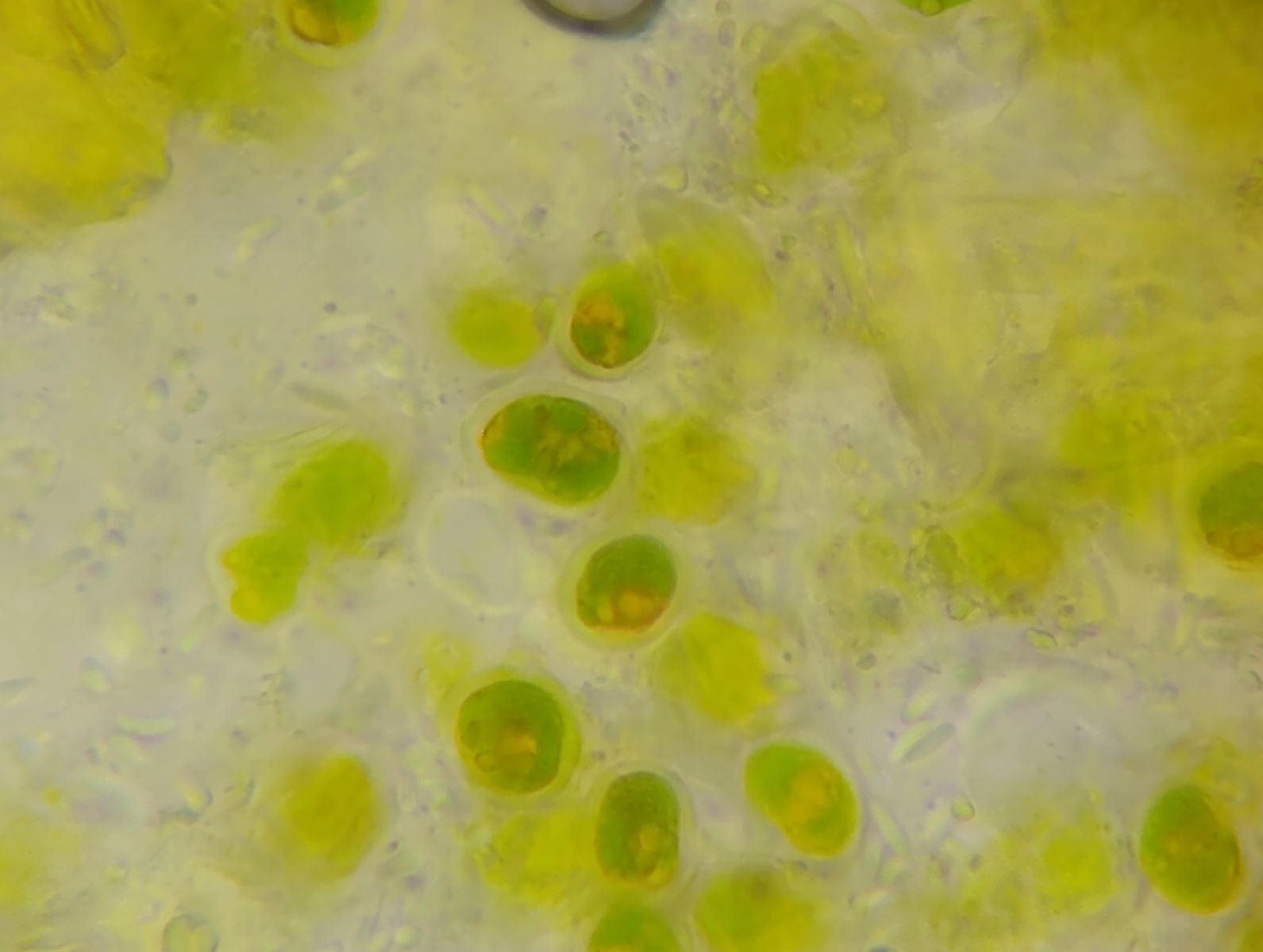 Die gelben und gelb-grünen Algen sind dickwandig und elliptisch geformt