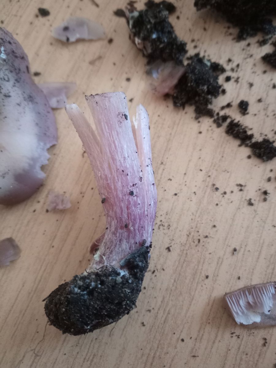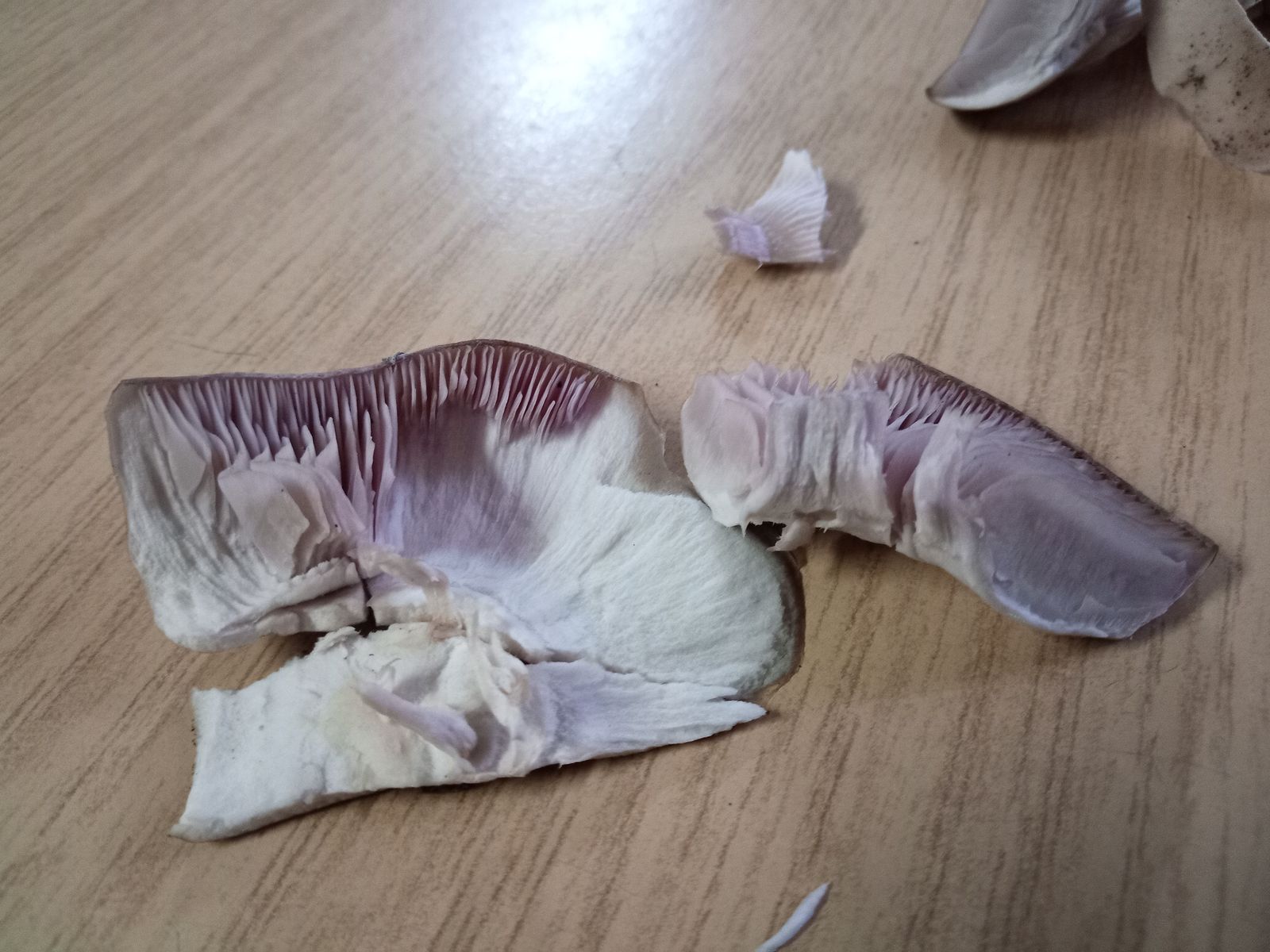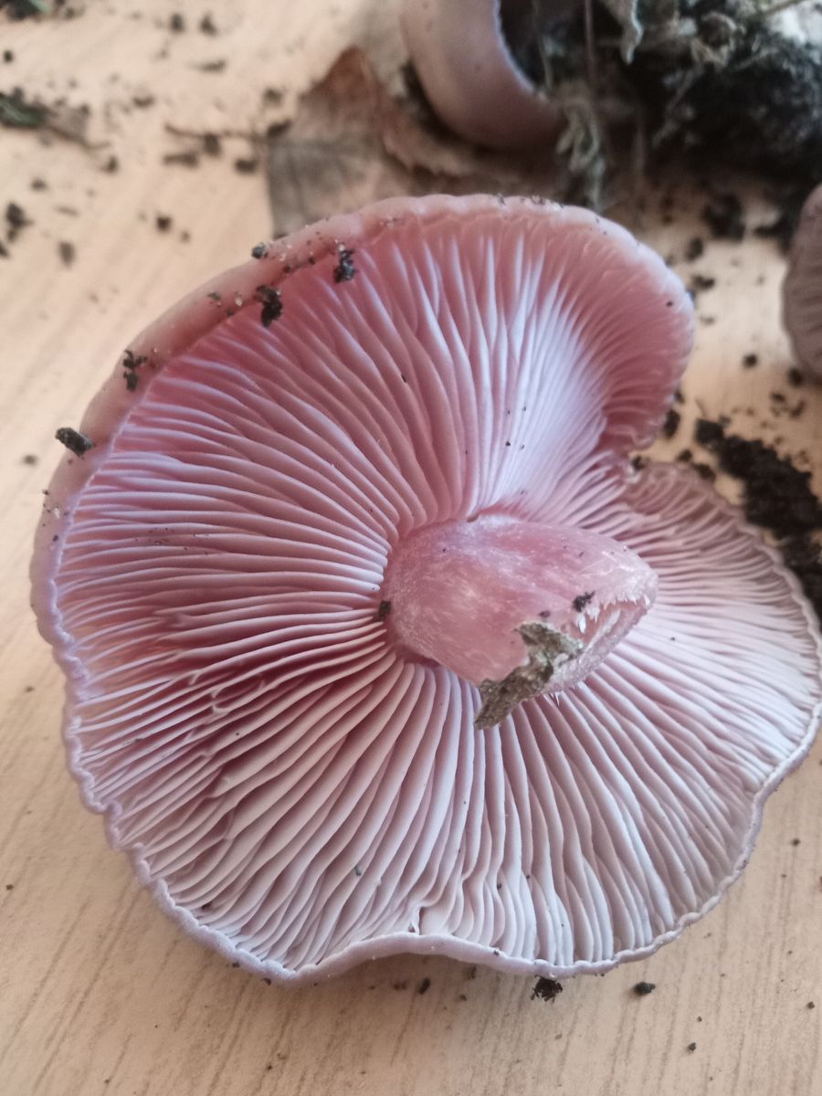 Für Lepista glaucocana (Blassblauer RR) sind die Fruchtkörper hier schon zu deutlich violett gefärbt, denke ich. Der hat nur in ganz jungen Stadien unauffällige Blau- Violettöne. Vor allem die Lamellen sollten bei glaucocana nicht violett sein (Vgl. erstes Bild).