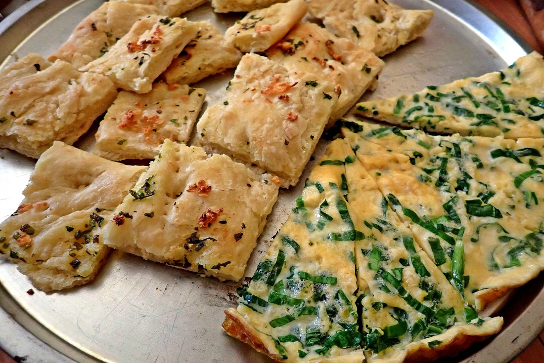 Die hungrigen Mäuler wurden zur Begrüßung mit Focaccia (natürlich mit zerlassener Bärlauchbutter) und Bärlauch-Omelett gestopft.