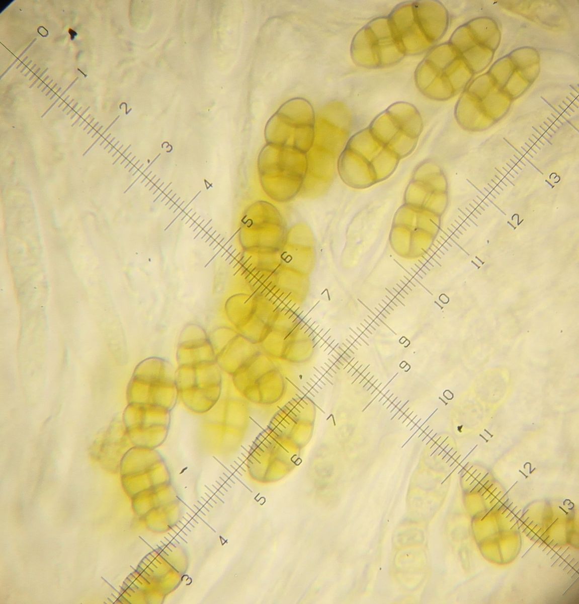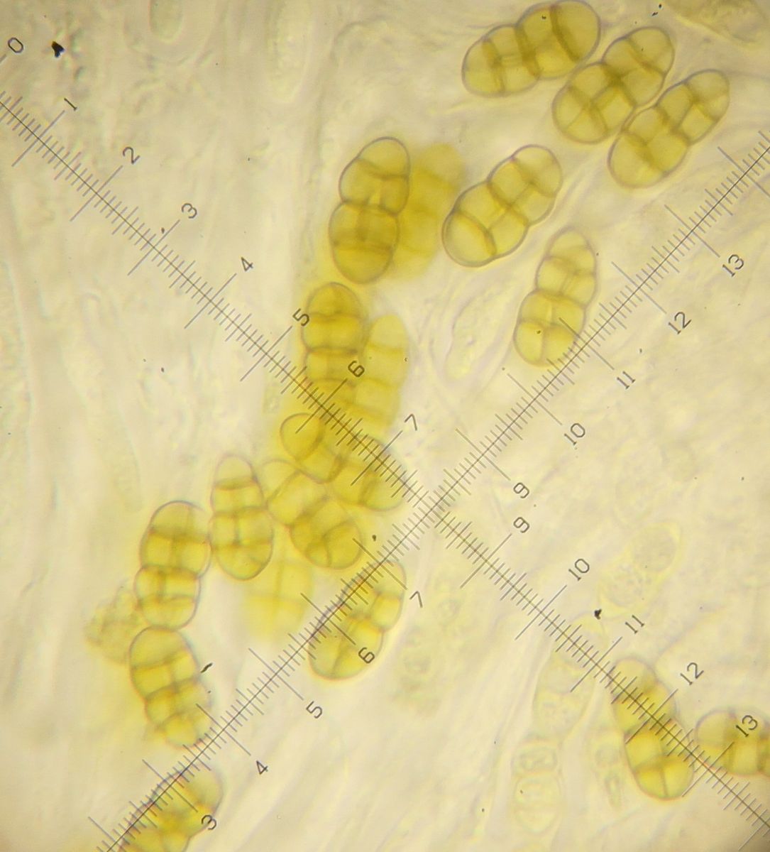 Pseudothezien gesellig unter der Rinde wachsend, Asci: 8-sporig, zylindrisch, bitunicat Sporen: muriform 3-quersepten und 2-5 Längssepten, gelbbraun, 16,46-18,27 (19,41) x 7,88- 8,72 (9,74)µ