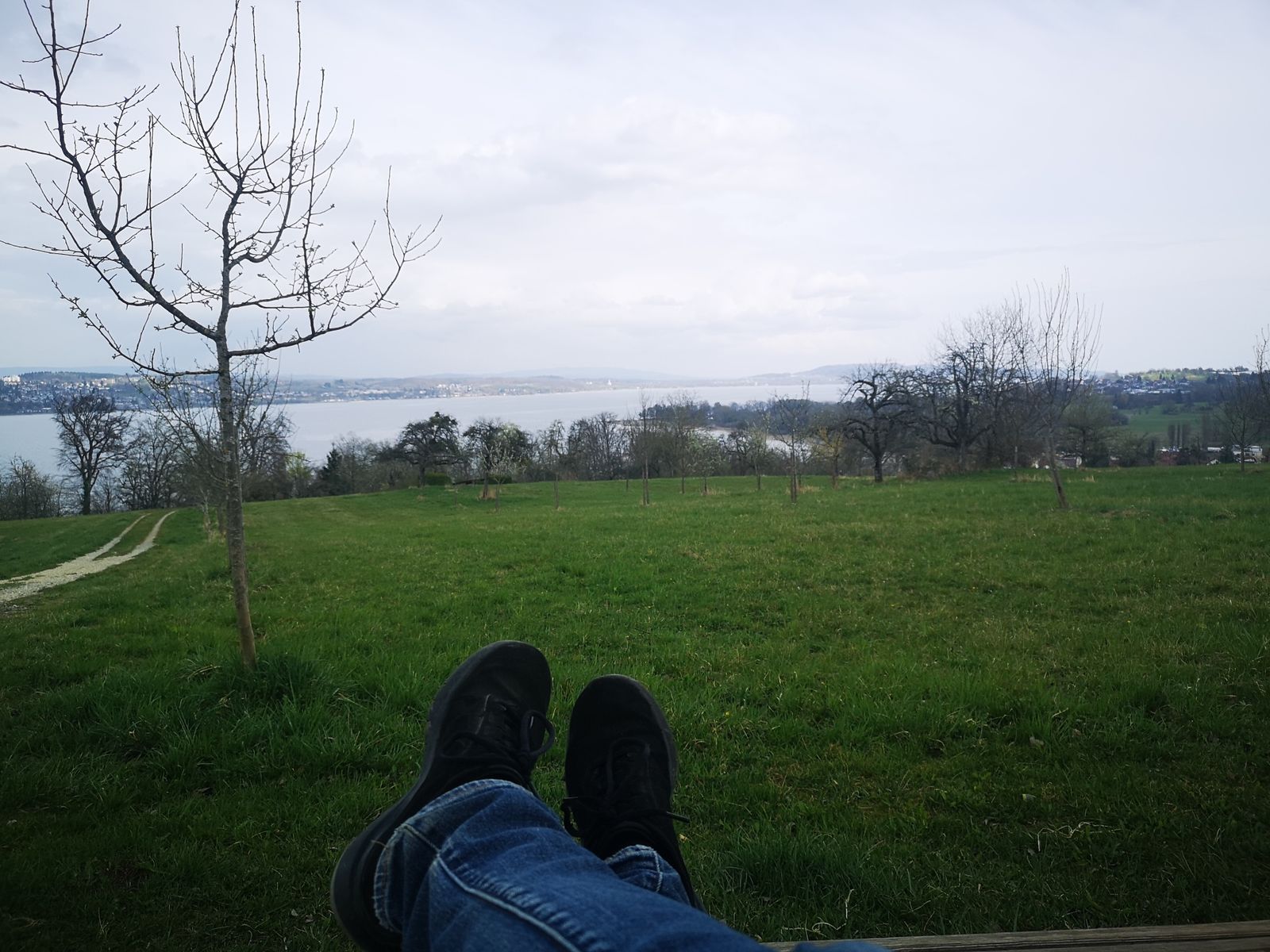Noch einmal über eine Streuobstwiese mit Blick über denn See, dann gehts wieder ab nach Hause