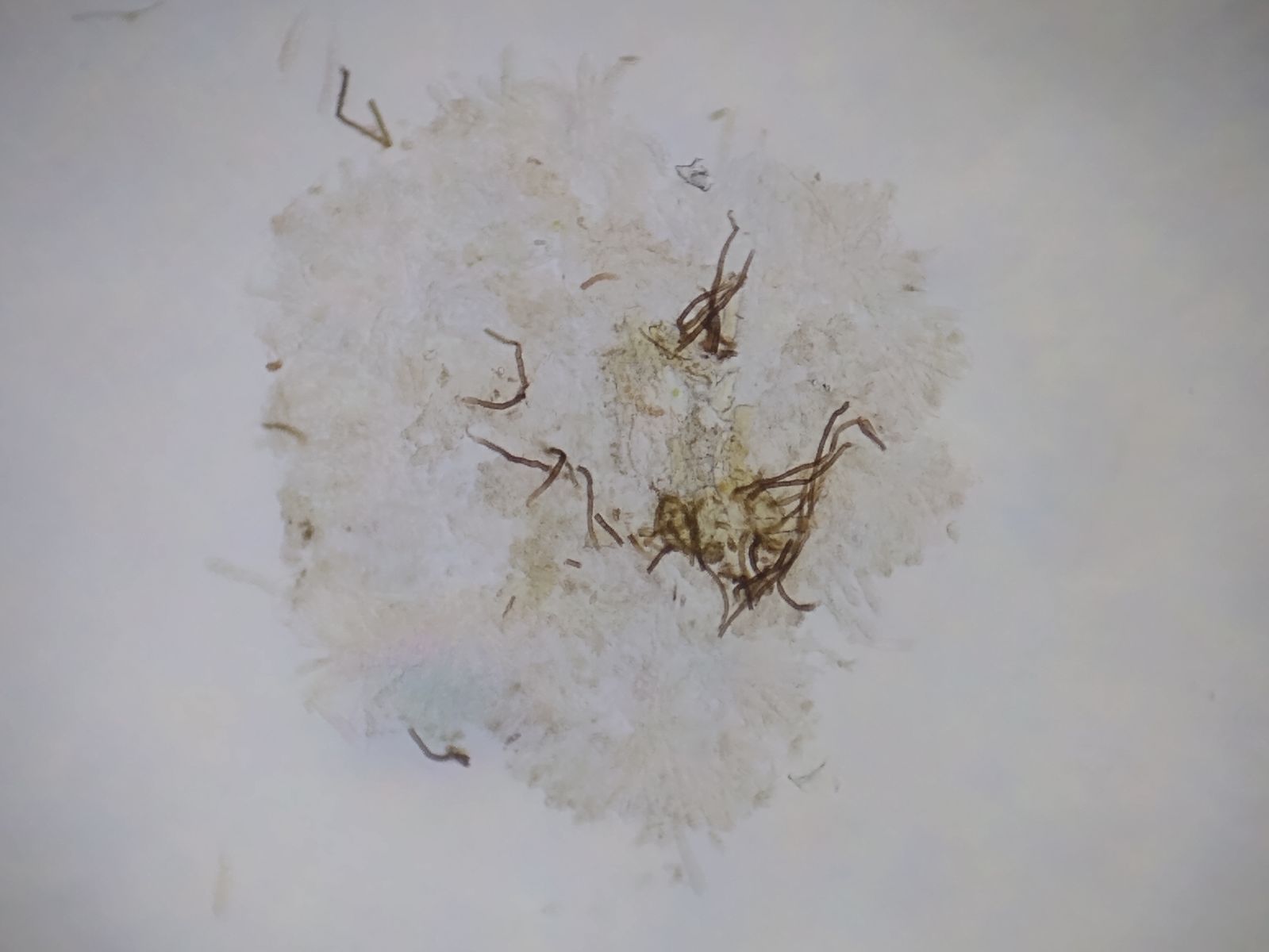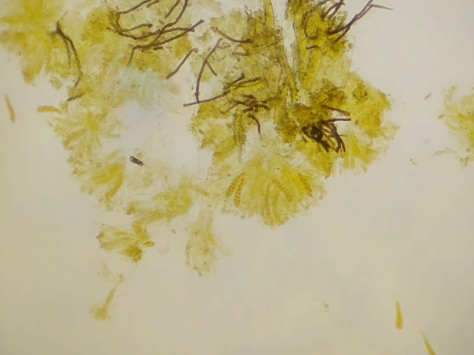 Bild 3 Fruchtkörper zerquetscht in Wasser, mit etwas braunem Fremdmaterial