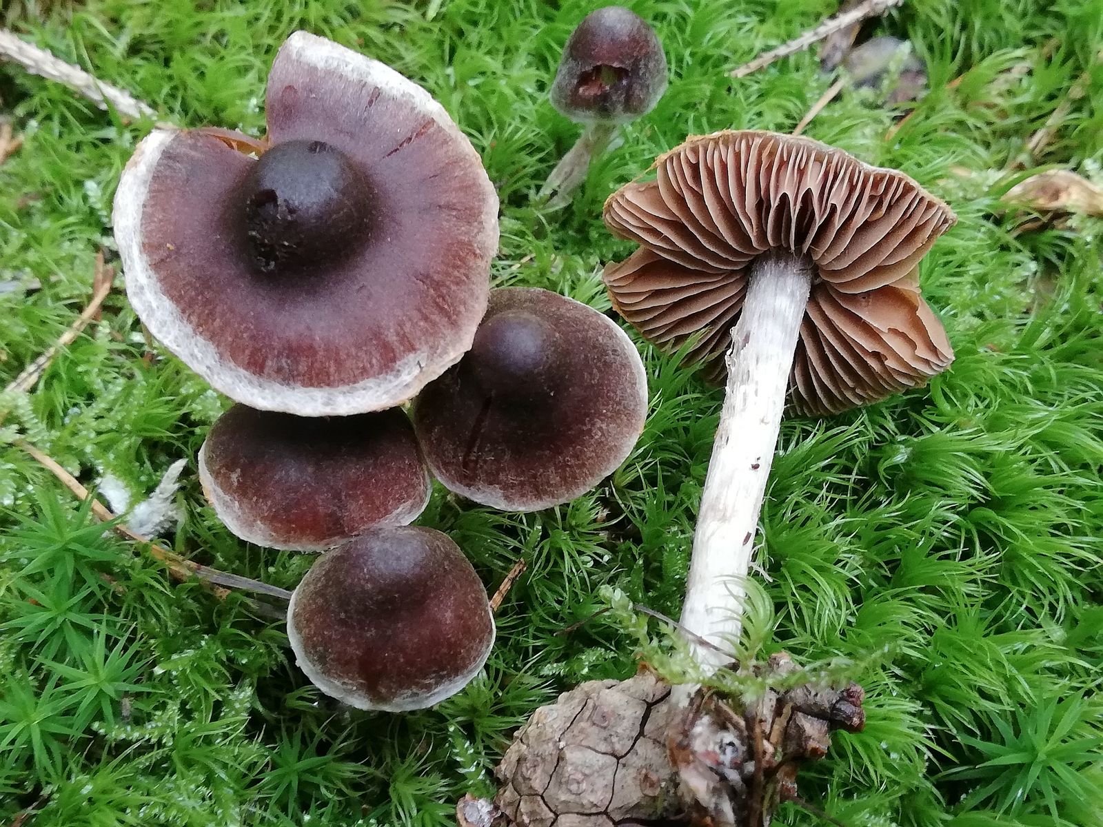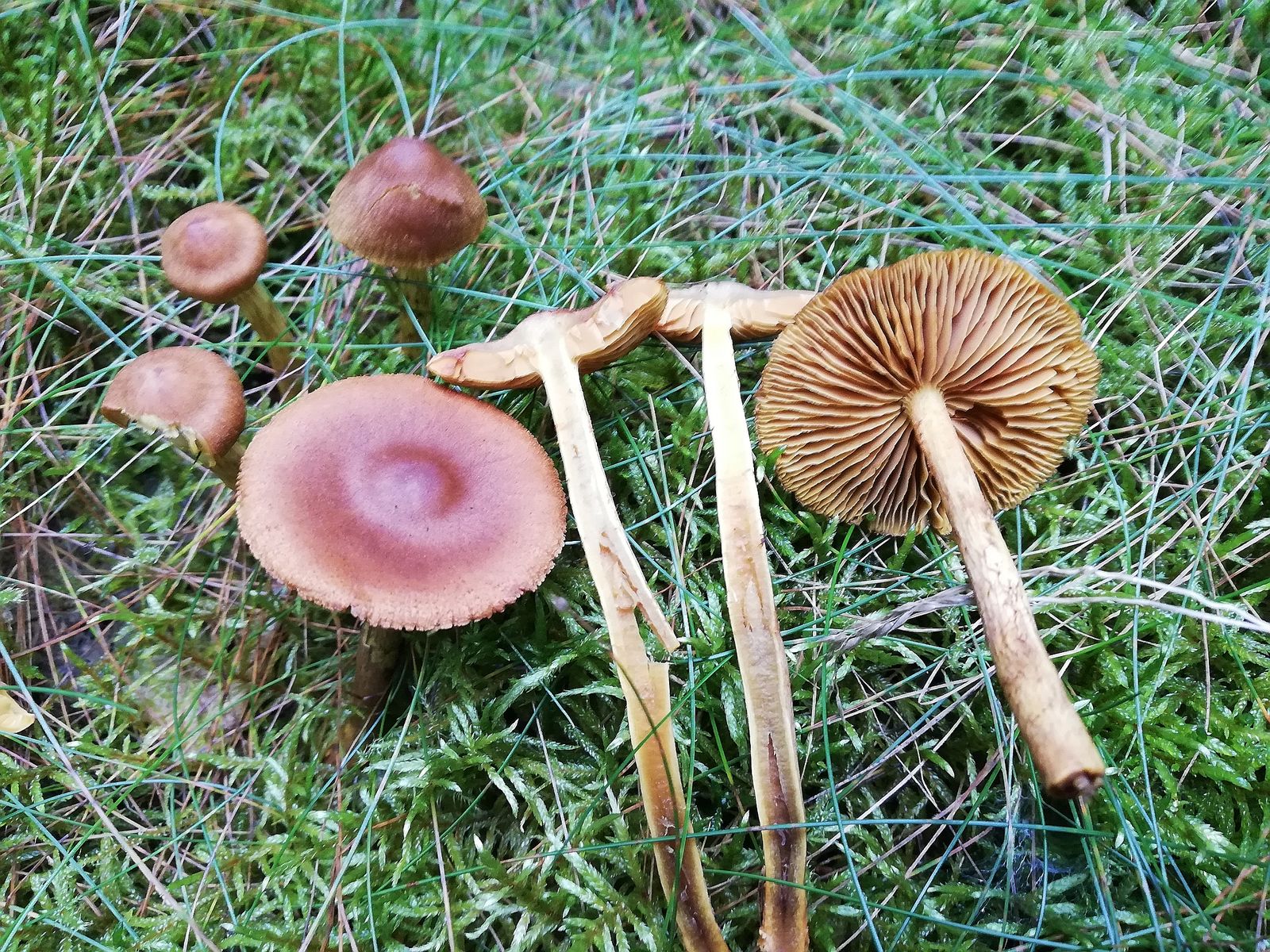 Die Telamonie/Hydrocybe (Foto 2)gleiches Habitat ohne Eiche. Vielleicht Richtung C. cf. rigidus (kann der auch ohne Birke?), C. cf. flexipes (leider nicht dran gerochen ![]()