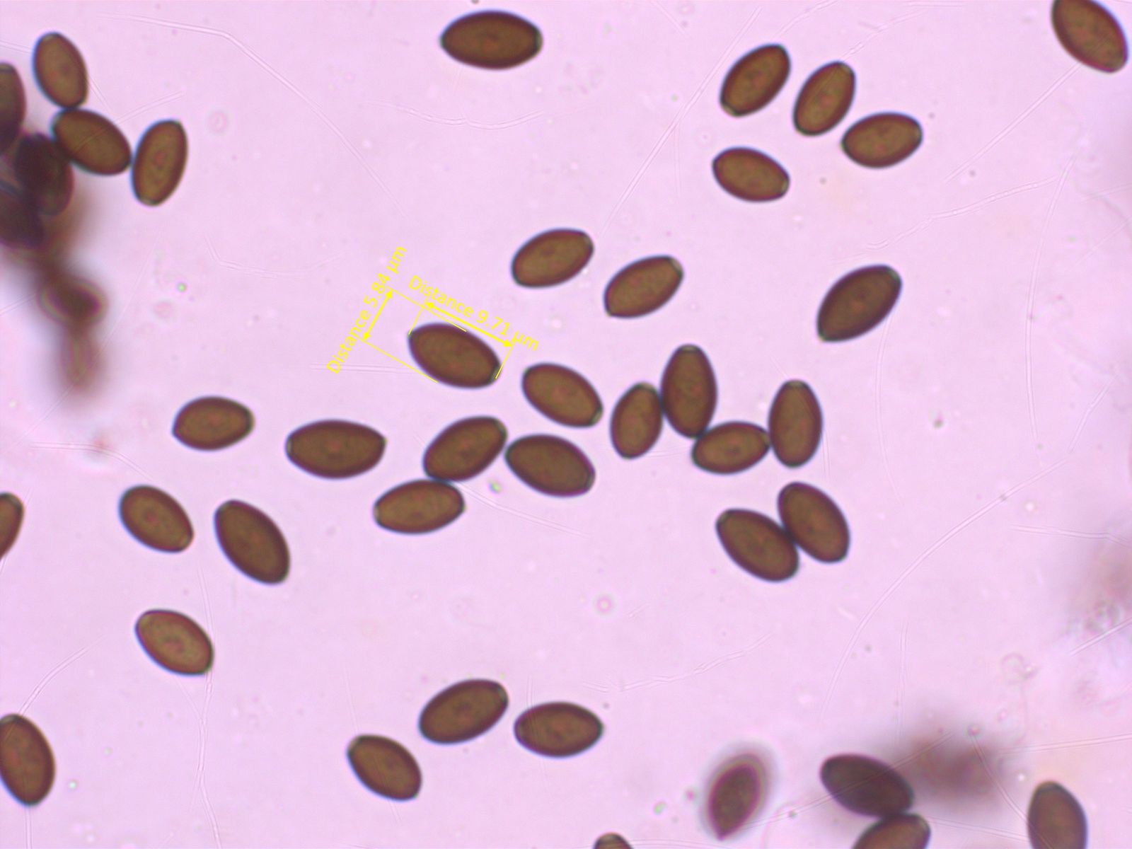Die Sporen sind wenig spektakulär. Das Velum war sehr spärlich, auch an dem Baby gab es kaum etwas zum Mikroskopieren.