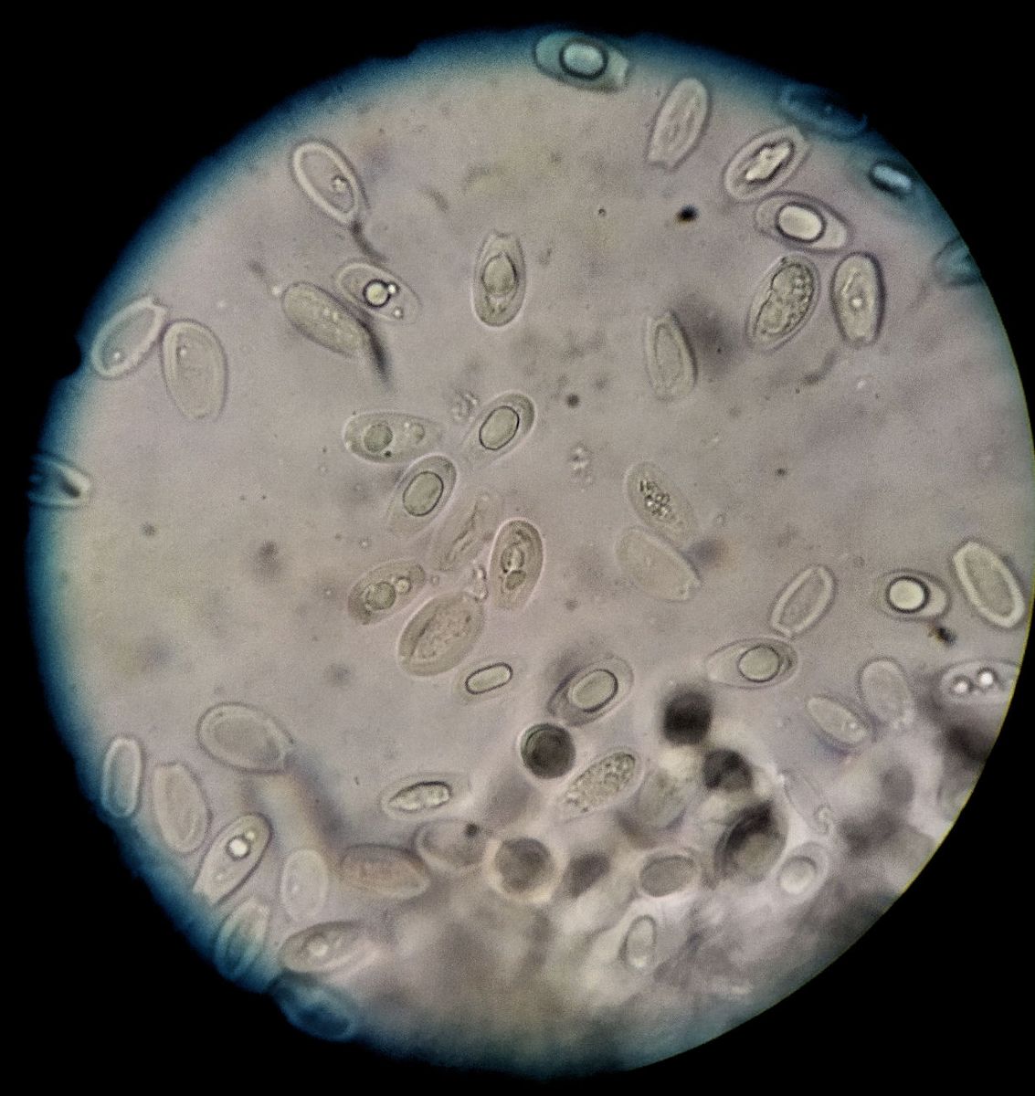 Die Sporen recht groß, 15-18 x 8-10µ, stellenweise mit "Hörnchen" (truncat?)