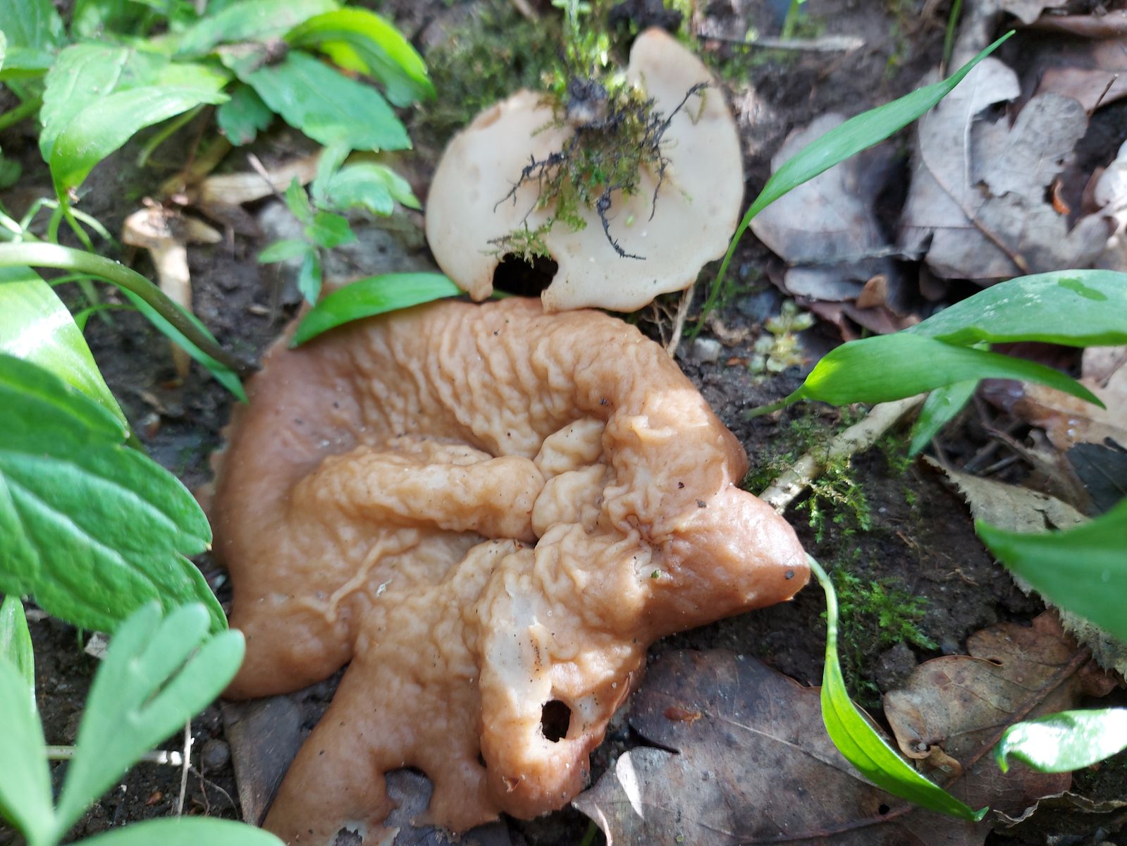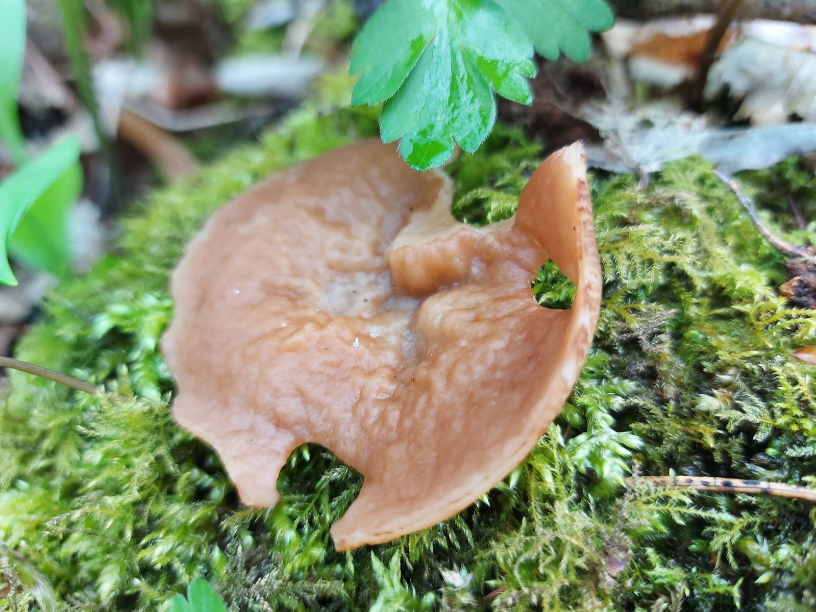 Was mich stutzig macht: Der Chlorgeruch war wahrnehmbar, allerdings nicht sehr intensiv. Das hätte ich anders erwartet. Außerdem erscheinen mir die Pilze ein wenig hell. Auch die Ränder sind nicht nach oben gewellt. Käme denn hier auch Gyromitra in Frage? G. ancilis wächst nur an Nadelholz und G. parma scheint sehr selten zu sein.