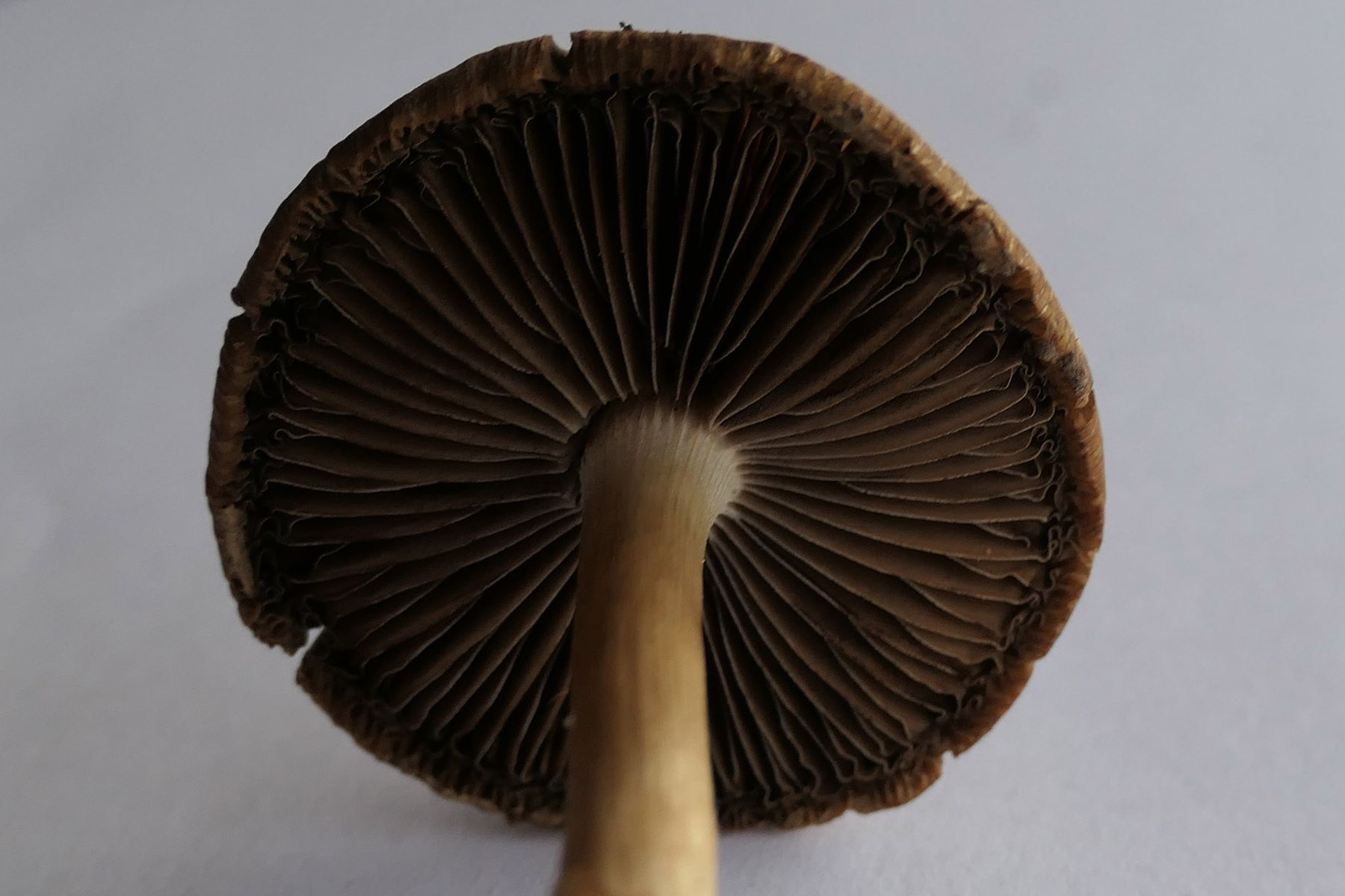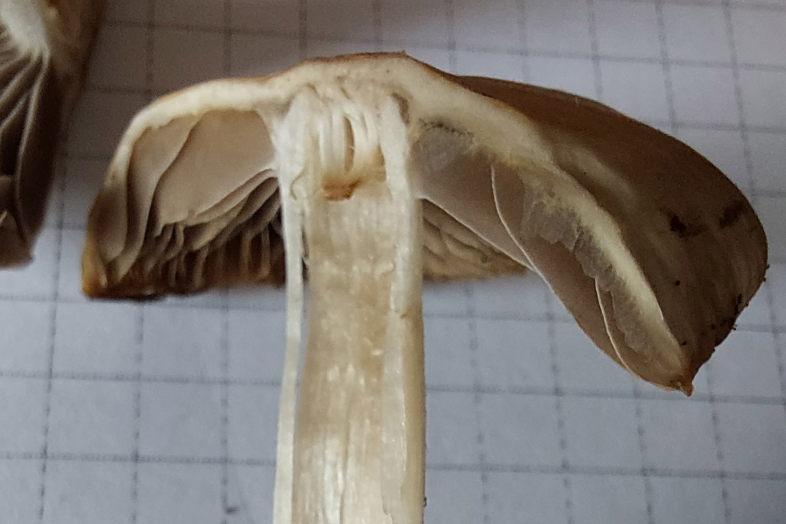 Lamellen braun, Schneide hell, Zwischenlamellen, angewachsen