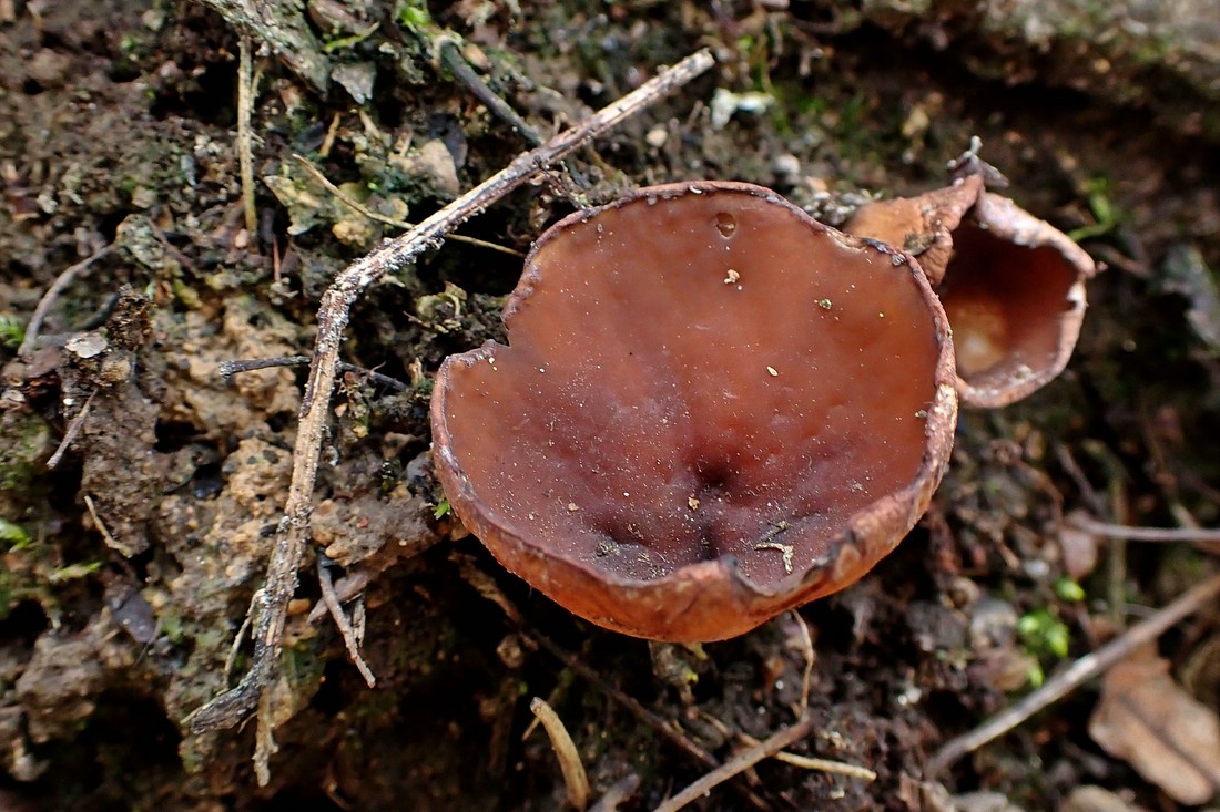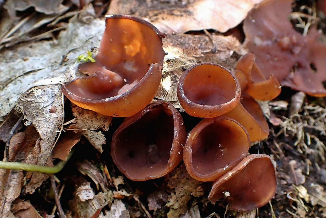 und ihren Begleitern, den Anemonenbecherlingen. Selten habe ich die so gesellig gesehen.