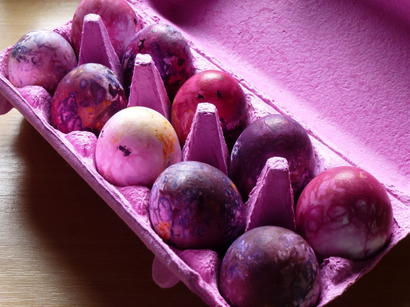 Mit einem die Landschaft überstrahlenden Ostereierstrauch nebst Enkel verabschiede ich mich für heute.